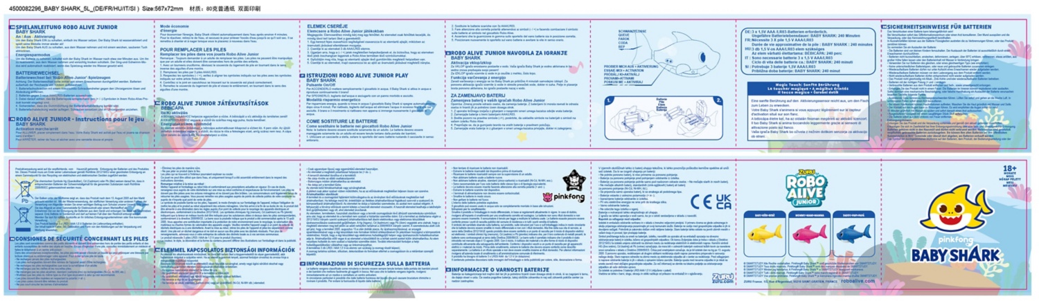 - fängt bei Kontakt mit Wasser an zu schwimmen und spielt das bekannte Babyshark-Lied ab,