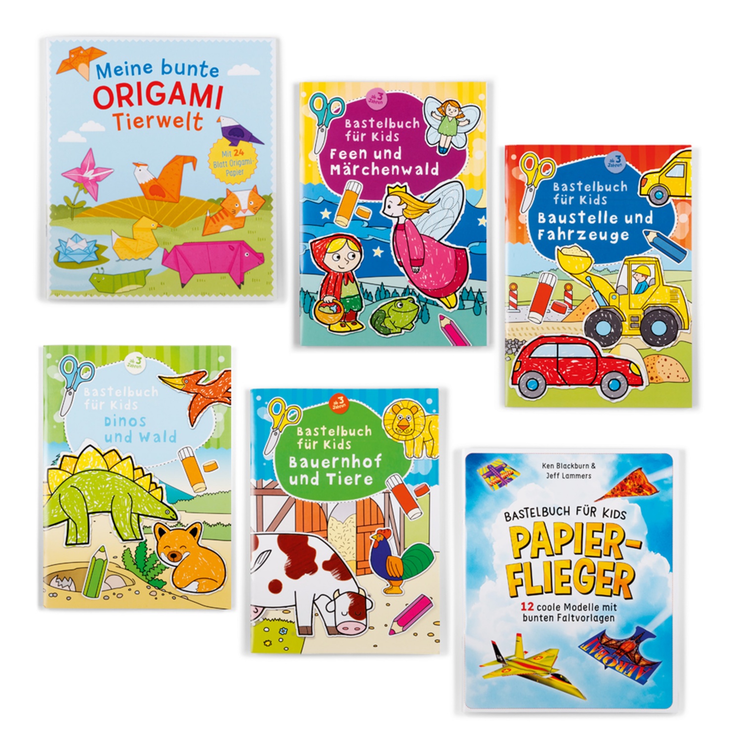 - bunte Bastelbücher zu beliebten Themen wie Bauernhof oder Prinzessinnen zur Förderung der Feinmotorik