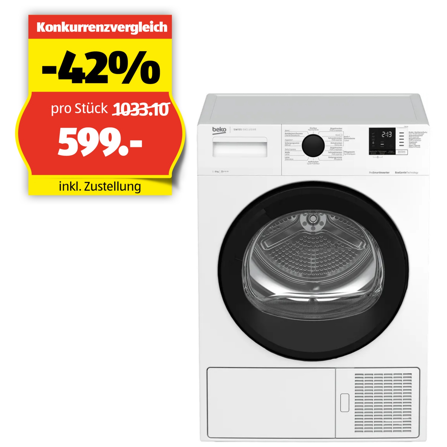 • Wellenartige Trommelbewegung für sanfteres Trocknen