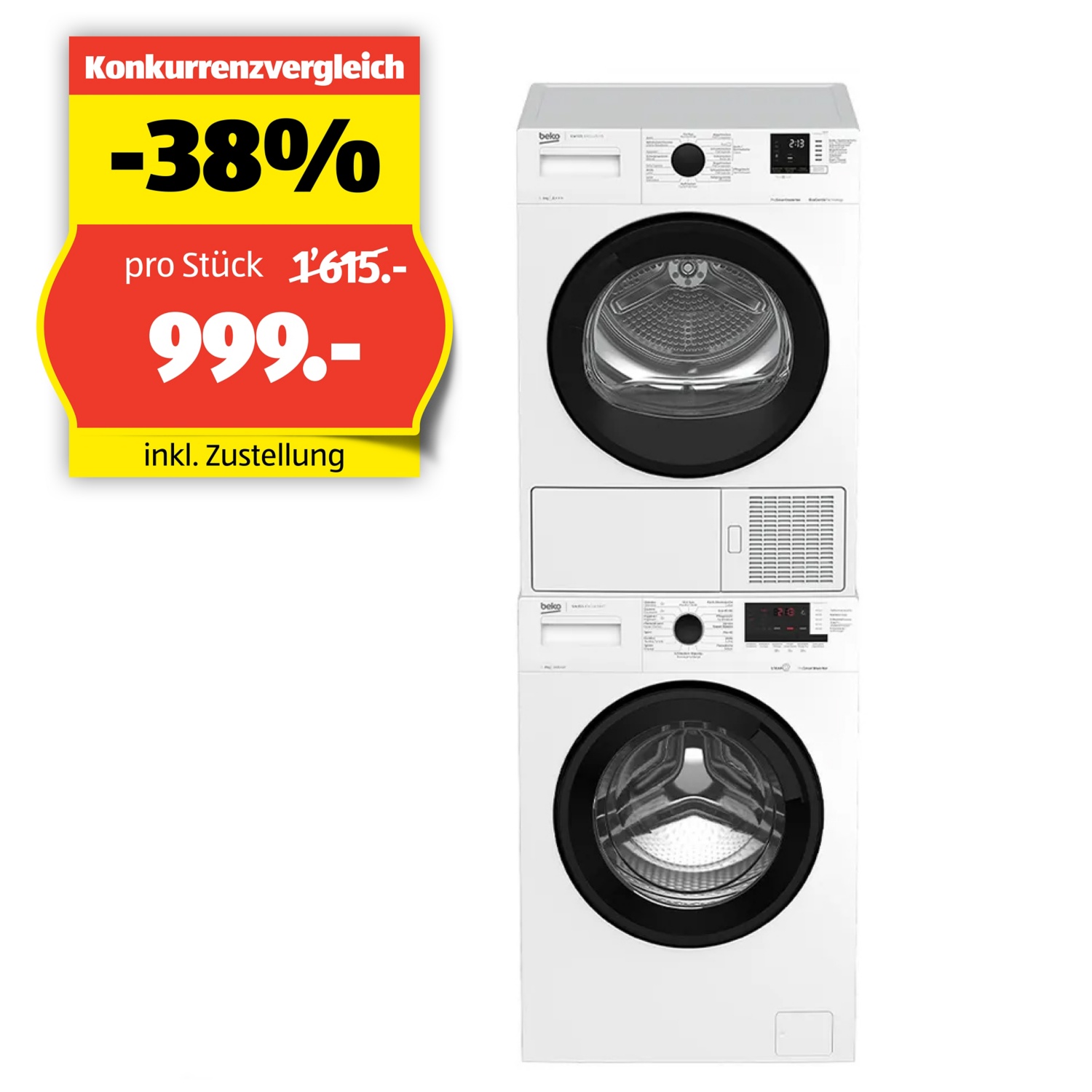 Maximiere deine Waschkapazität und spare wertvollen Platz mit dem innovativen Waschturm von Beko, bestehend aus der leistungsstarken WM215 Waschmaschine und dem effizienten TR218 Trockner.