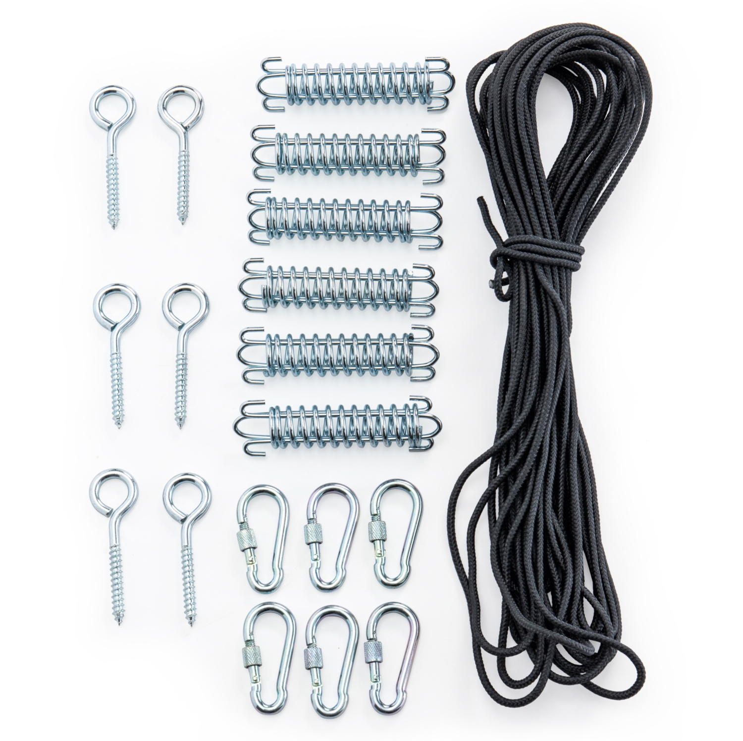 - inkl. Karabiner, Federn, Ringschrauben und Kordel