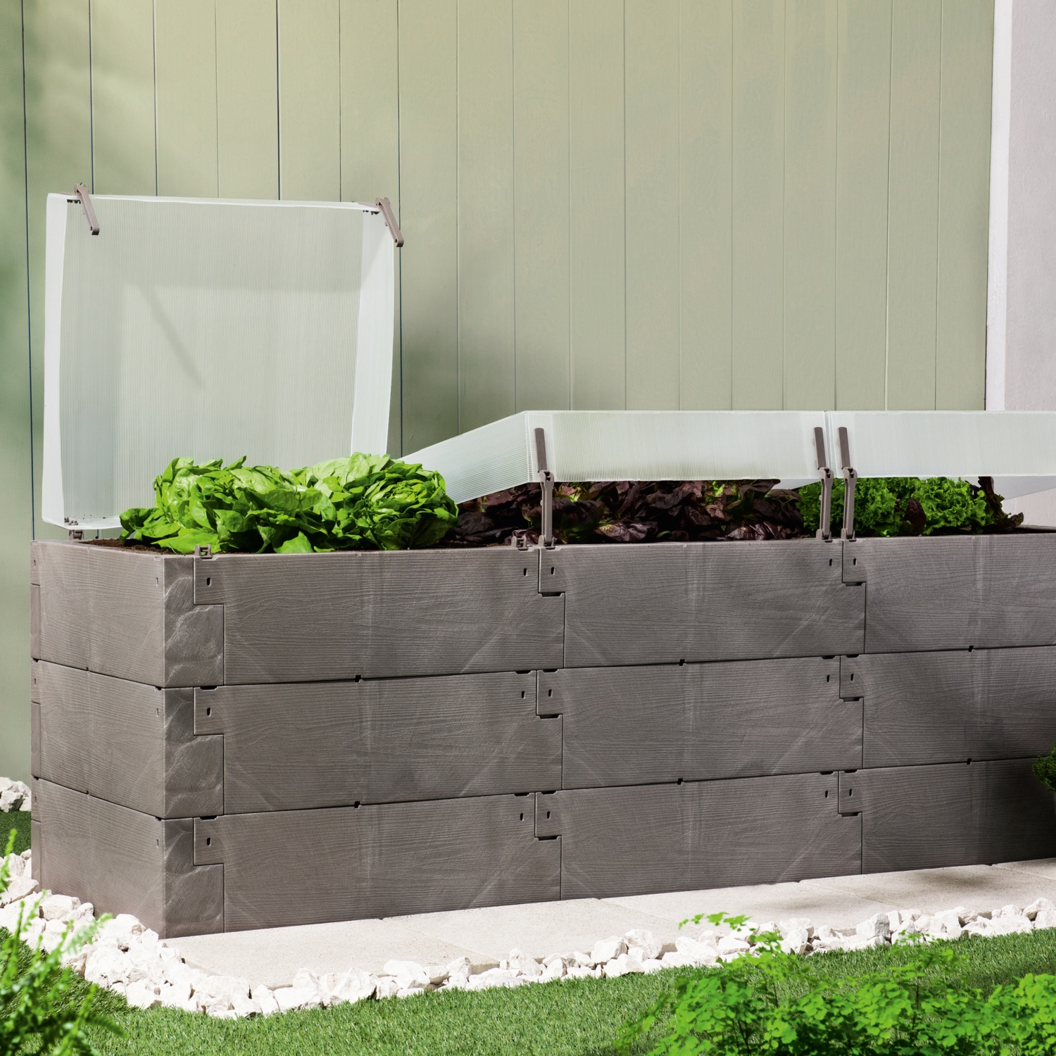 - inkl. 3 UV- und witterungsbeständigen Thermohauben, wärmeisolierend und mit Fensterlüftern variabel zu belüften