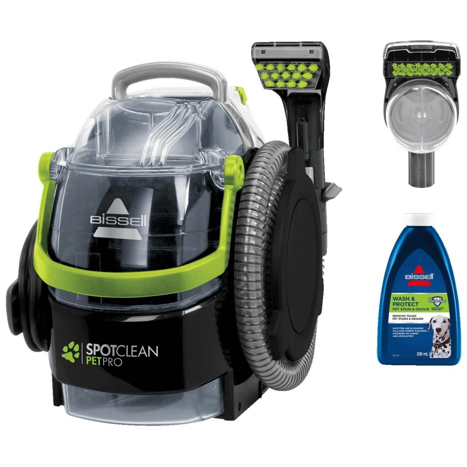 - Mit dem praktischen Bissell SpotClean Pet Pro sind Sie auf unerwartete Verschmutzungen vorbereitet. Er entfernt Flecken und Verschmutzungen mit Wasser, BISSELL-Reinigungsmittel und handgeführten Reinigungsgeräten mit starker Saugkraft. Der SpotClean Pet Pro ist der ideale Reiniger für stark beanspruchte Bereiche und Treppen, für Polster, Autoinnenräume und vieles mehr. Die 8-Zentimeter-Fleckenbürste eignet sich bei alltäglichen Verschmutzungen und Flecken. Das Stain Trapper Tool sprüht, schrubbt und saugt extra-grosse, extra-stinkende Verschmutzungen auf. Die Verschmutzungen werden in einem separaten, abnehmbaren Behälter gesammelt und aufbewahrt, der sich abdrehen lässt, um leicht entleeren und entsorgen lässt. Mit diesem einzigartigen Gerät bleiben Verschmutzungen durch Haustiere und andere Flüssigkeiten im Gerät und nicht in Ihrer Maschine. Endlich ist es möglich, Flecken schnell und auf Anhieb zu entfernen.