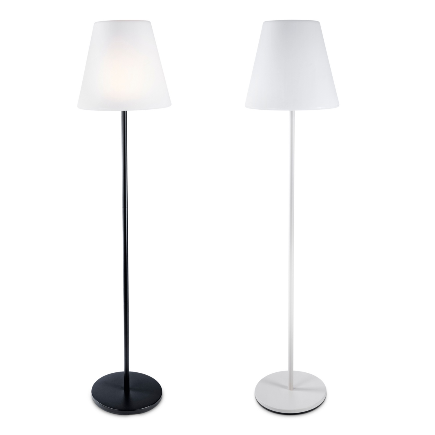 - LED-Solar-Stehleuchte im modernen Design mit RGB- und warmweissem Licht für stimmungsvolle Gartenbeleuchtung