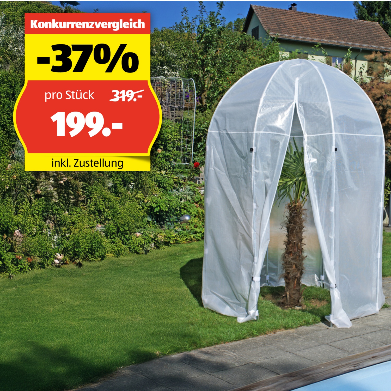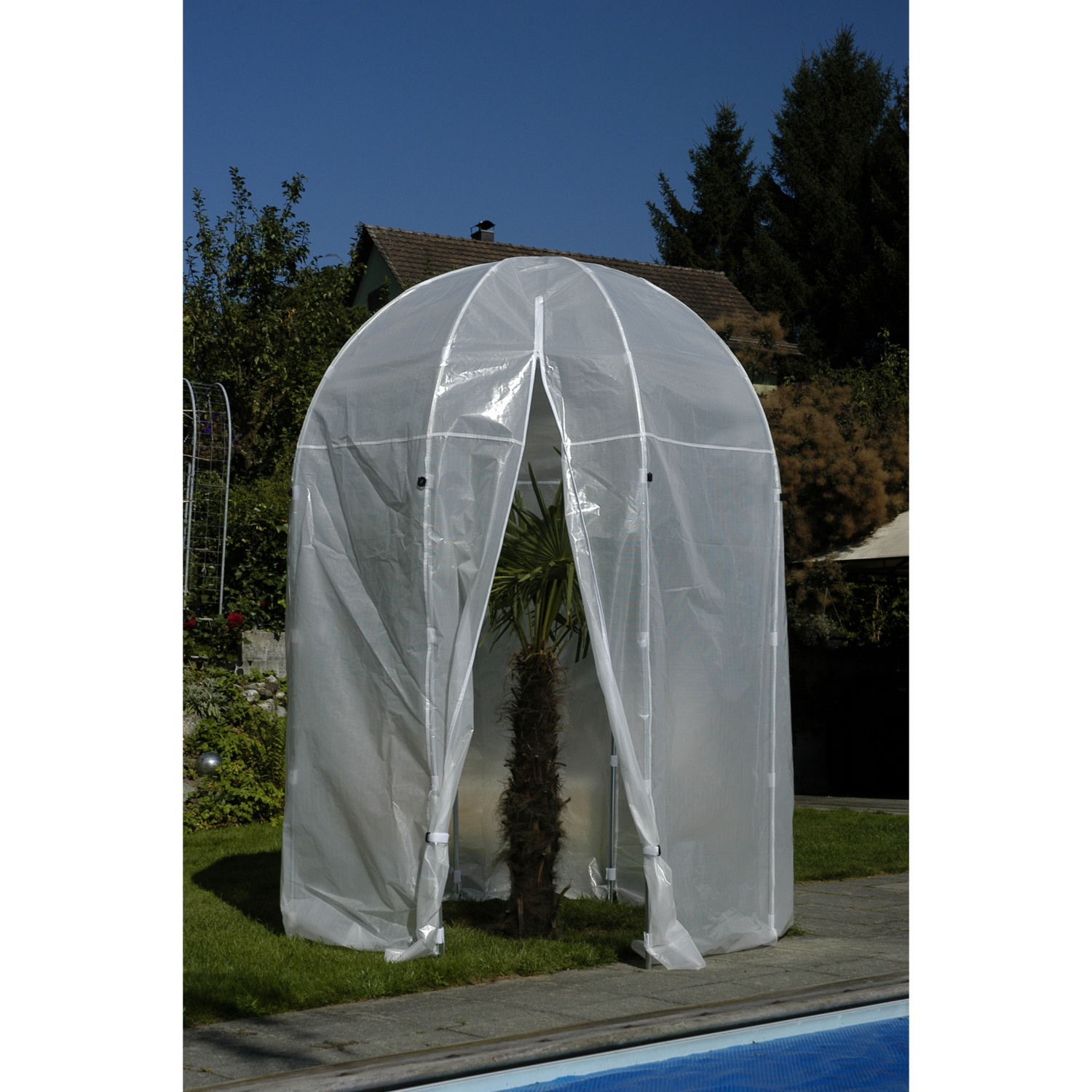 Mit dem stabilen, verzinkten Stahlgestell steht das Palmenhaus sicher und langlebig – perfekt für die mehrjährige Nutzung im Garten oder auf der Terrasse.
