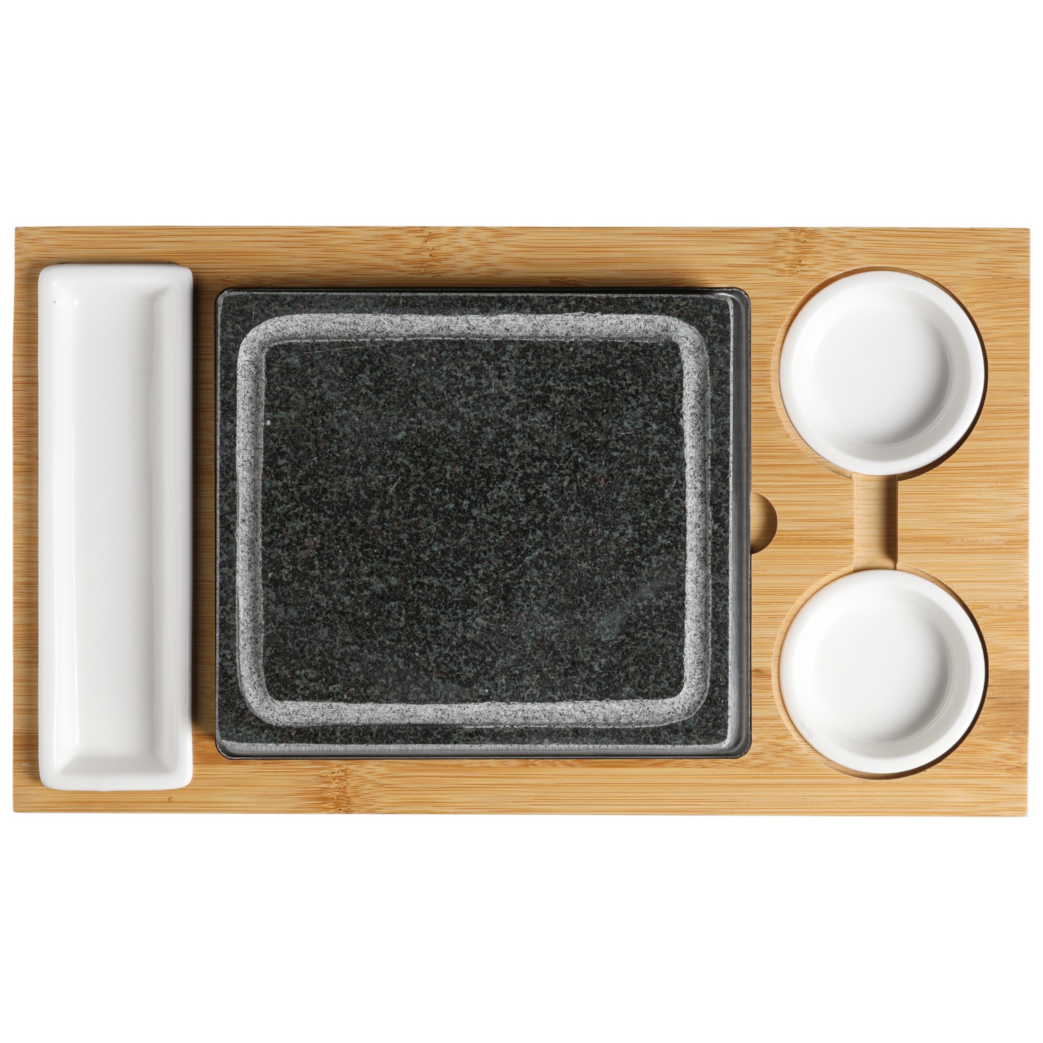 - inkl. 3 Keramikschalen: 2 x rund (Ø 7 cm) und 1 x länglich (18 x 5 cm)