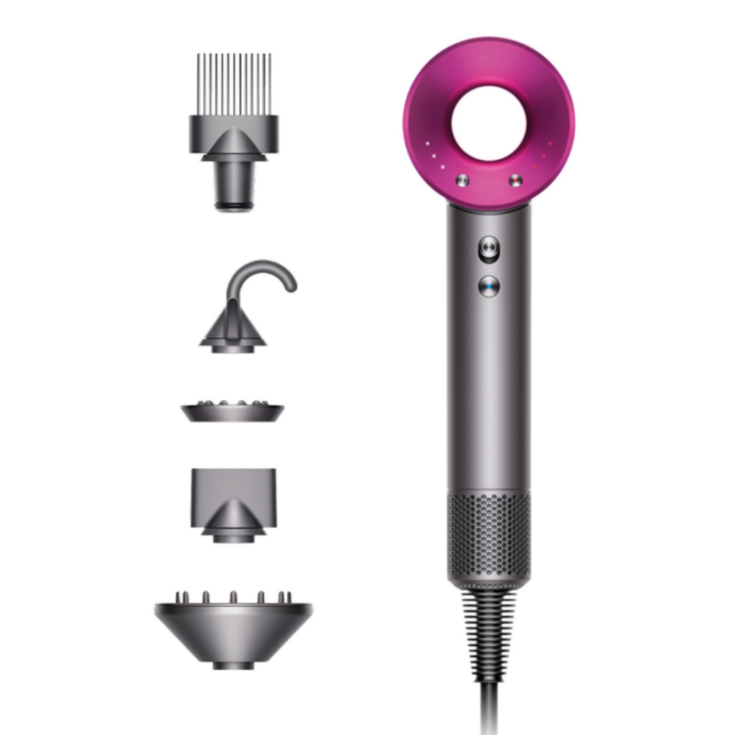 Schnelles Trocknen - präziser und starker Luftstrom dank des leistungsstarken Dyson digitalen Motors V9. Temperatursensoren schützt vor extremen Hitzeschäden, um den natürlichen Glanz zu erhalten. Motor erzeugt eine unhörbare Frequenz. Magnetische Aufsätze - lassen sich leicht drehen und austauschen. Cool Touch Technologie - die Oberflächen der Aufsätze bleiben kühl. 4 Temperaturstufen: (Höchste Stufe: 100° C; Mittlere Stufe: 80° C; Niedrige Stufe: 60° C; Kaltstufe: 28° C). LED-Anzeige. Produktdaten: