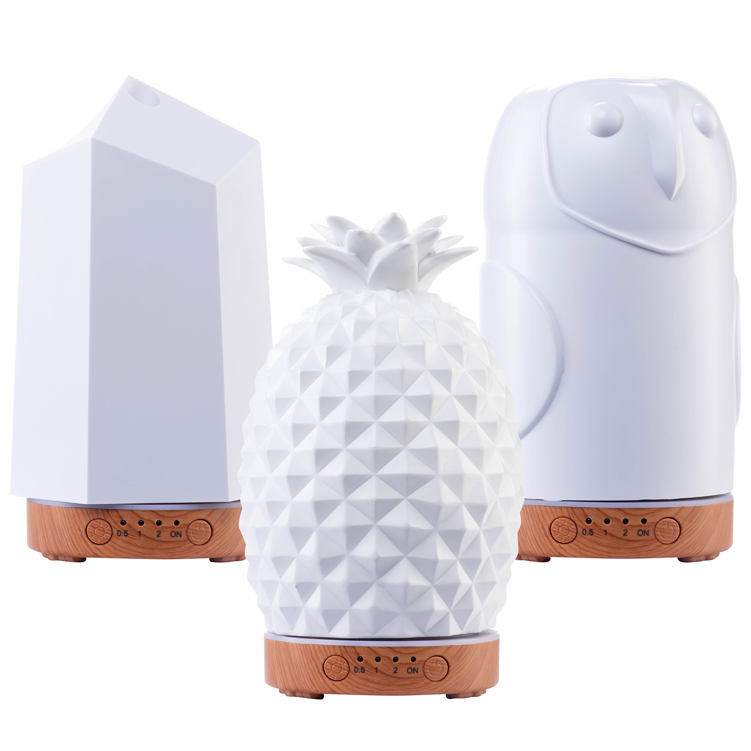 - Design Luftbefeuchter mit 3 verschiedenen Formen Kristall, Eule und Ananas