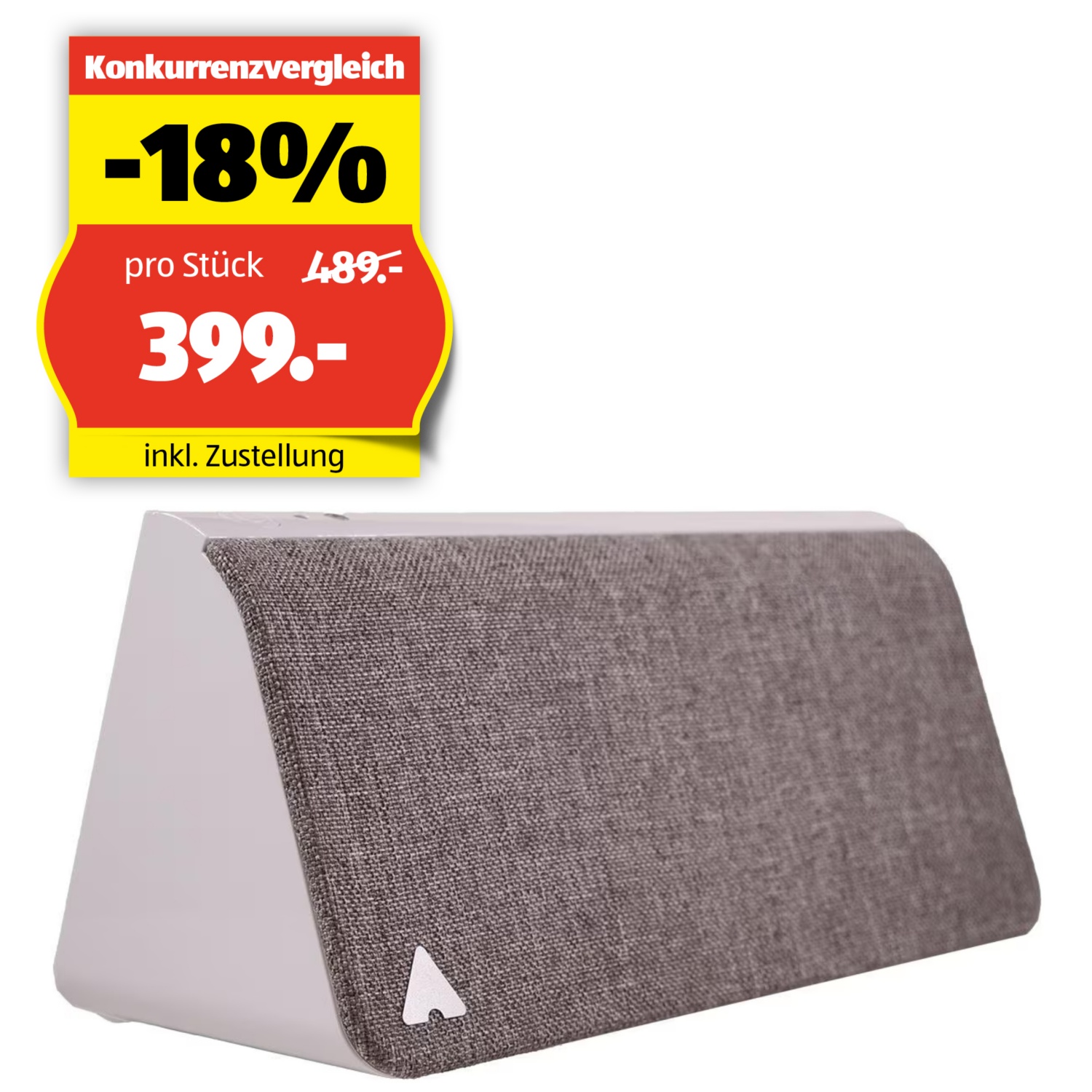 - Material: Weisses Hartplastik-Gehäuse mit magnetisch wechselbarer Front (Stoff) in verschiedenen Farben