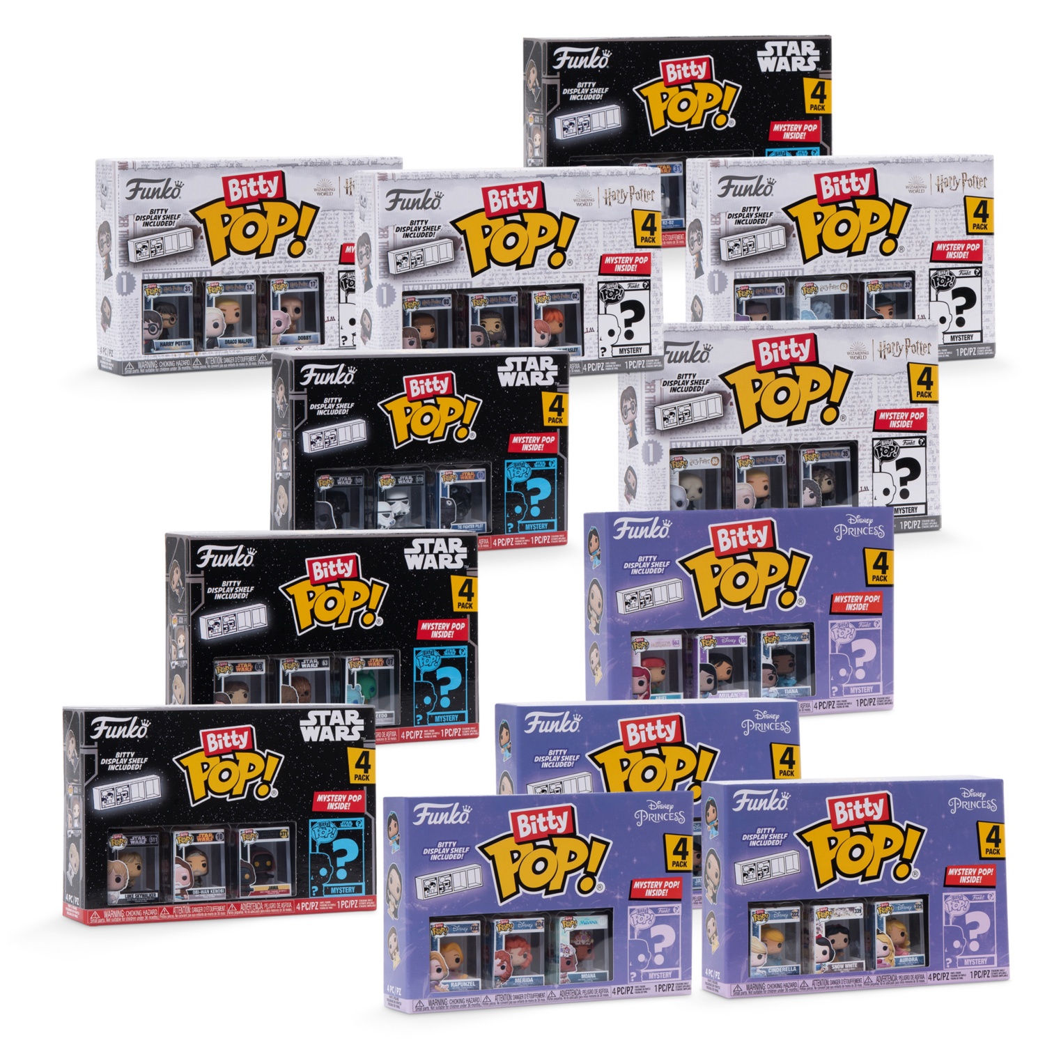 • Auswahl verschiedener Bitty POP! Figuren von Disney-Prinzessin, Harry Potter und Star Wars