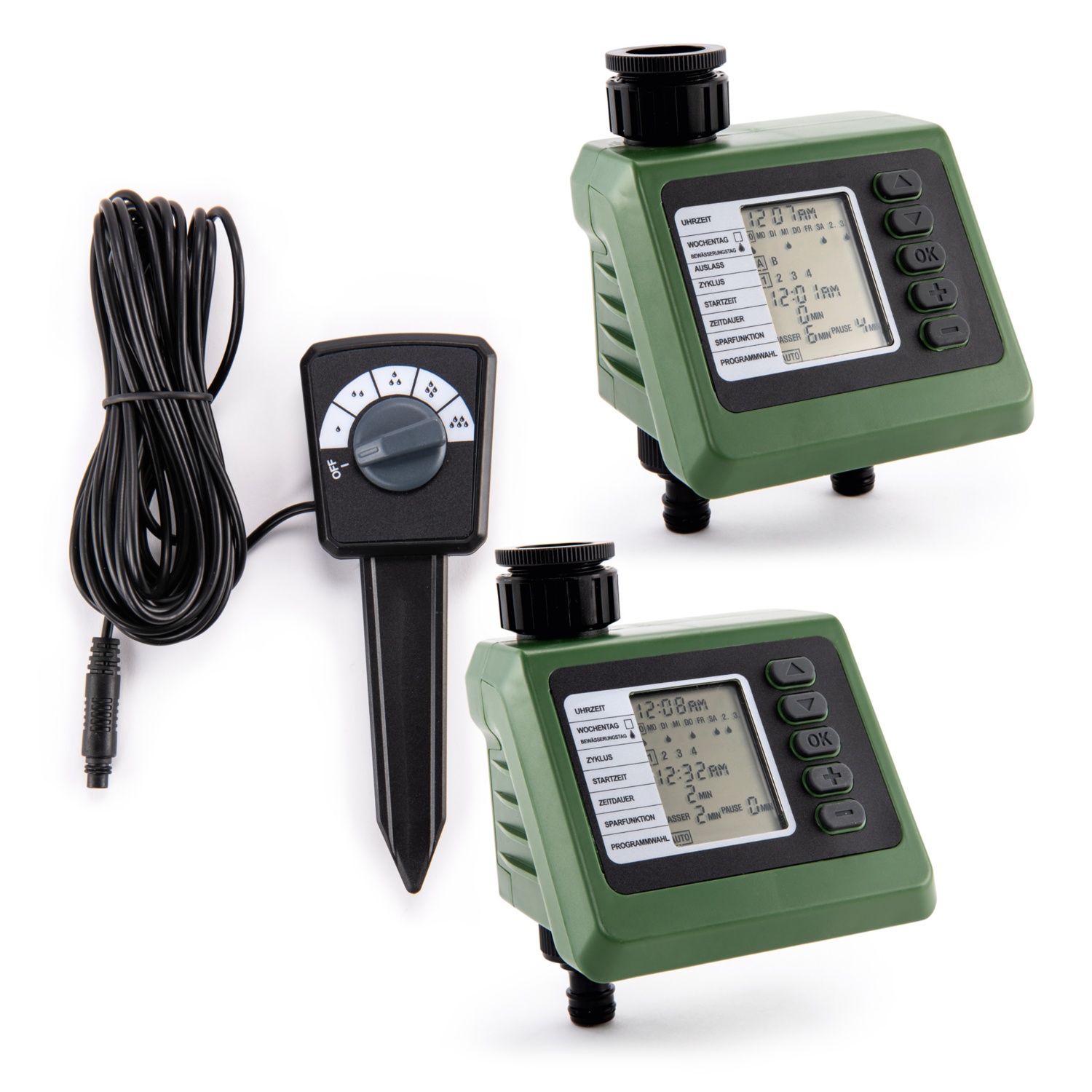 - Bewässerungscomputer mit Regensensor: verhindert oder unterbricht die automatische Bewässerung bei Regen oder ausreichender Bodenfeuchte
