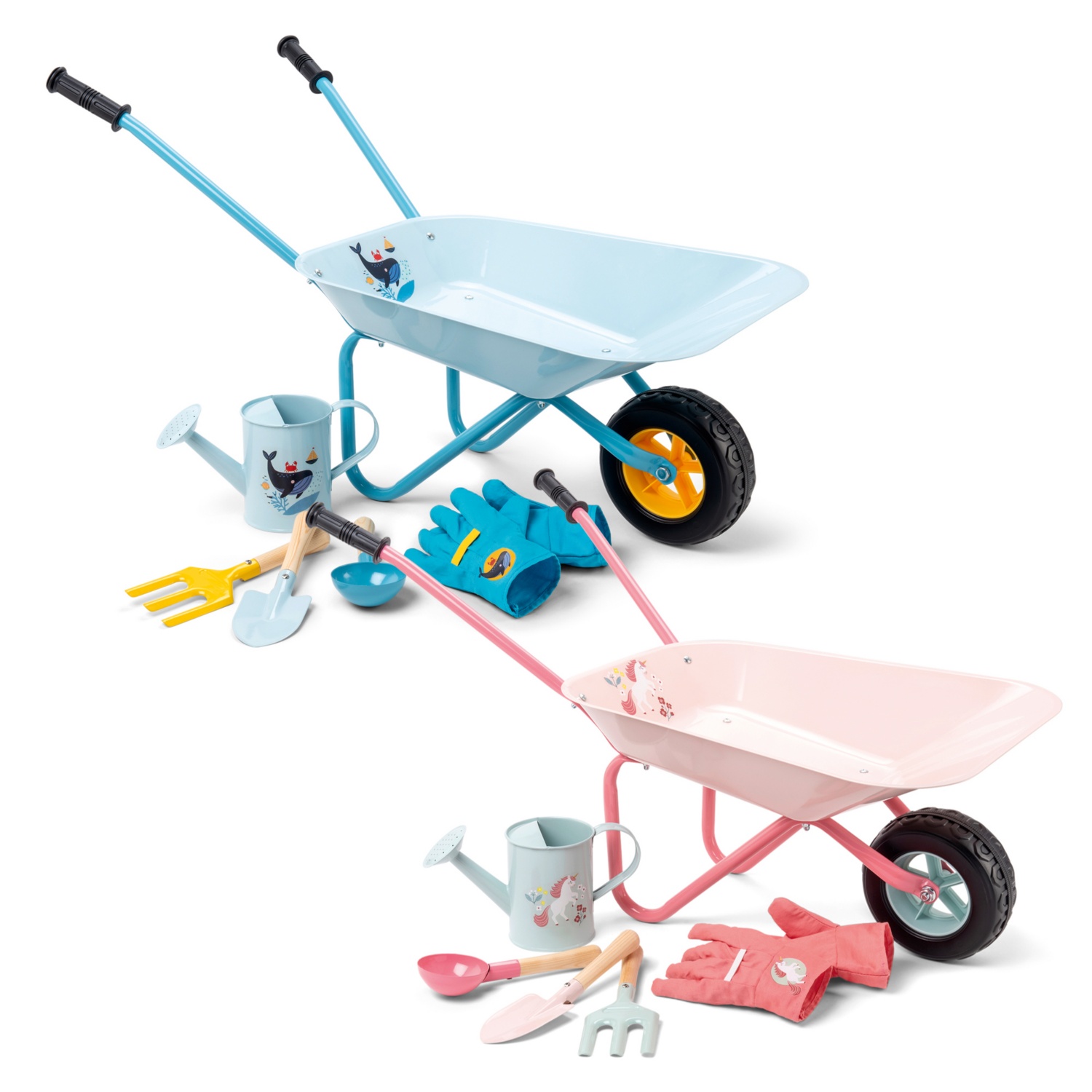FSC Holzgriff Werkzeuge 2 x Sortiment ( Wal & Einhorn) 6-teiliges Schubkarren Set: