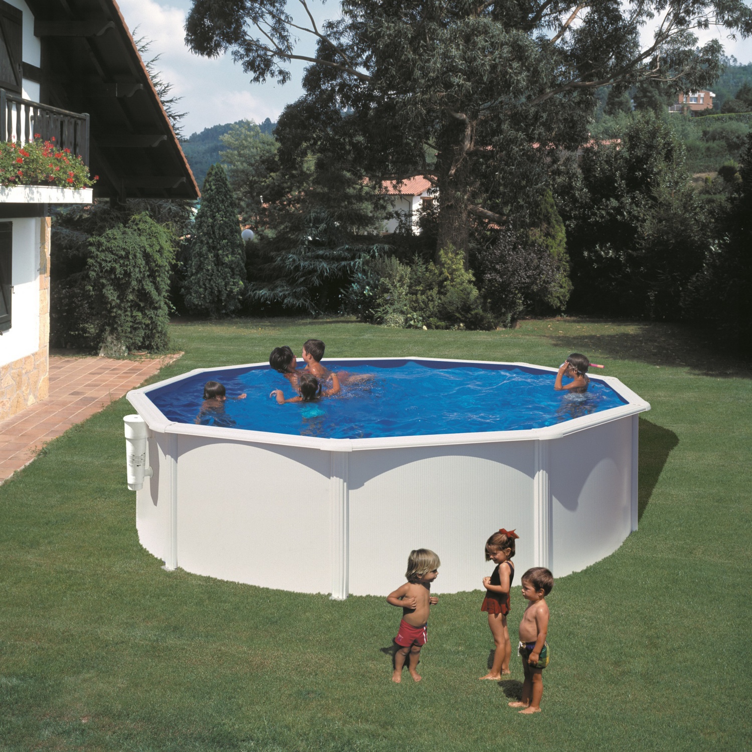 - Grosser Rundbecken-Pool mit stabiler Stahlwand