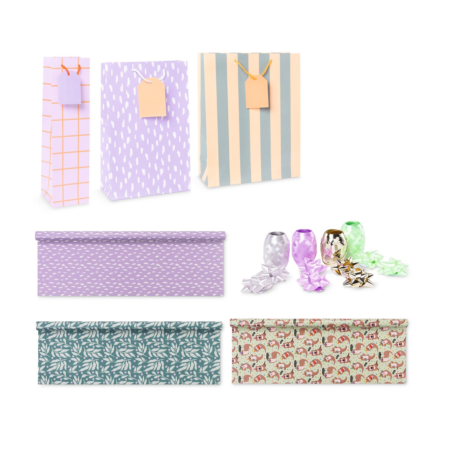 - 3 m x 70 cm Geschenkpapier, -taschen oder Schleifen-Box, versch. Farben und Modelle, jeweils in plastikfreier Verpackung