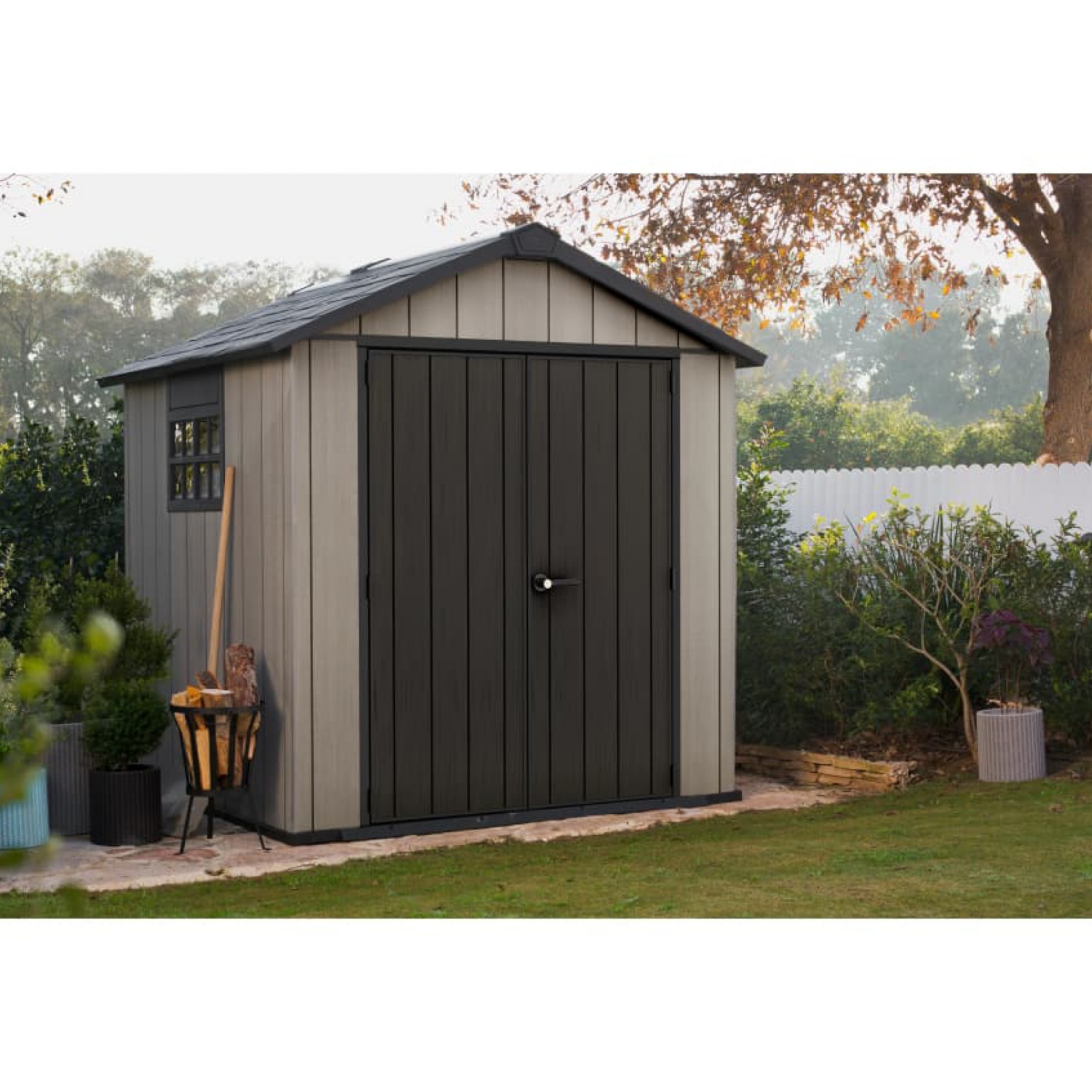 Entdecke das Keter Gerätehaus Oakland 757 in stilvollem Grau – die perfekte Kombination aus Stil und Funktionalität für deinen Garten.