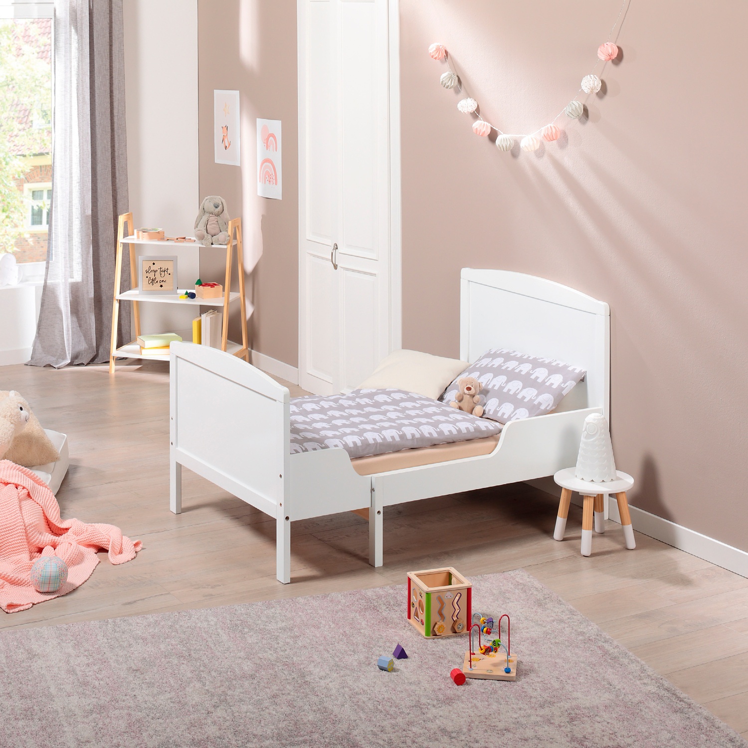 - Lieferumfang: 1 x ausziehbares Kinderbett aus lackiertem Massivholz und MDF, inkl. Lattenrost, Montagemateralien und Anleitung, B x L x H: ca. 91 x 137 – 207 x 80 cm, ca. 27 kg, Matratze nicht enthalten