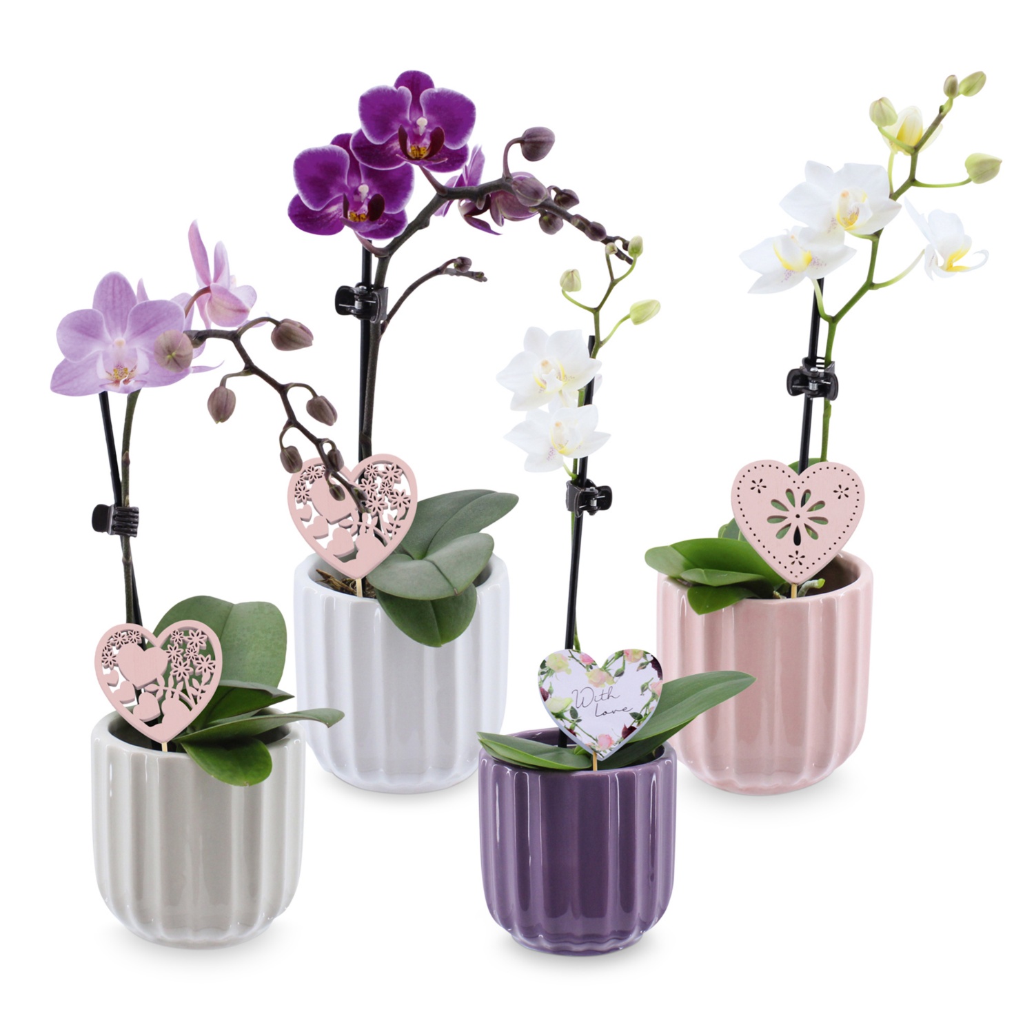 im ca. 7-cm-Keramikübertopf, Höhe inkl. Topf: mind. 20-30 cm, verschiedene Farben, inkl. dekorativem Herzstecker