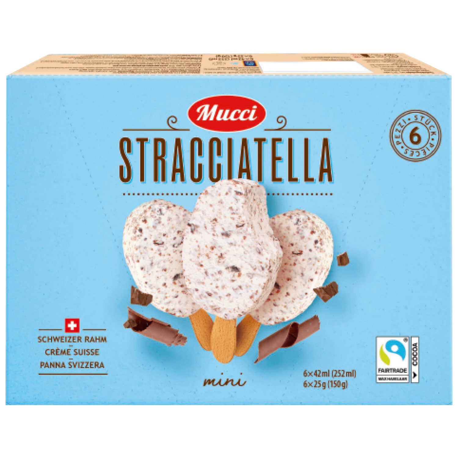 Das MUCCI Stracciatella Stielglace überzeugt mit cremiger Milchglace und feinen, knackigen Schokoladenstückchen – ein zeitloser Klassiker, der Gross und Klein gleichermassen begeistert. Umhüllt von einer zarten Milchschokolade bietet dieses Glace ein rundum harmonisches Geschmackserlebnis.