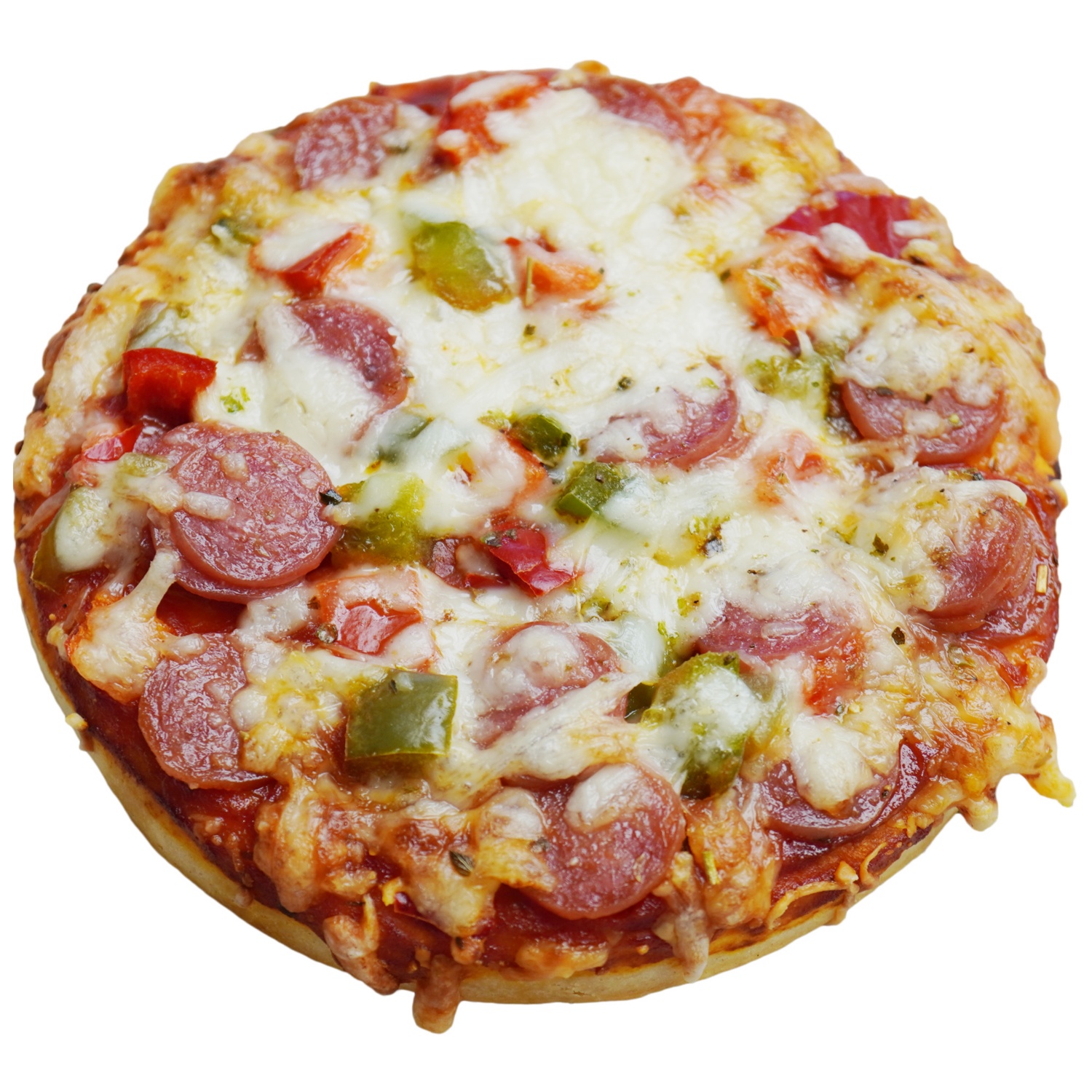 Weizenmehl, Tomatenpüree, Mini-Salami (10.7%) (Schweinefleisch, Speck, Speisesalz, Gewürzextrakte, Dextrose, Glukosesirup, Gewürze, Zucker, Antioxidationsmittel (Extrakt aus Rosmarin, Natriumisoascorbat), Konservierungsstoff (Natriumnitrit), Rauch), Paprika (10.7%), Edamer (Milch) (8.6%), Gouda (Milch) (8.6%), Wasser, Rapsöl, Hefe, Zucker, Speisesalz, Dextrose, Stärke, Kräuter, Weizenstärke, Knoblauch, Gewürze.