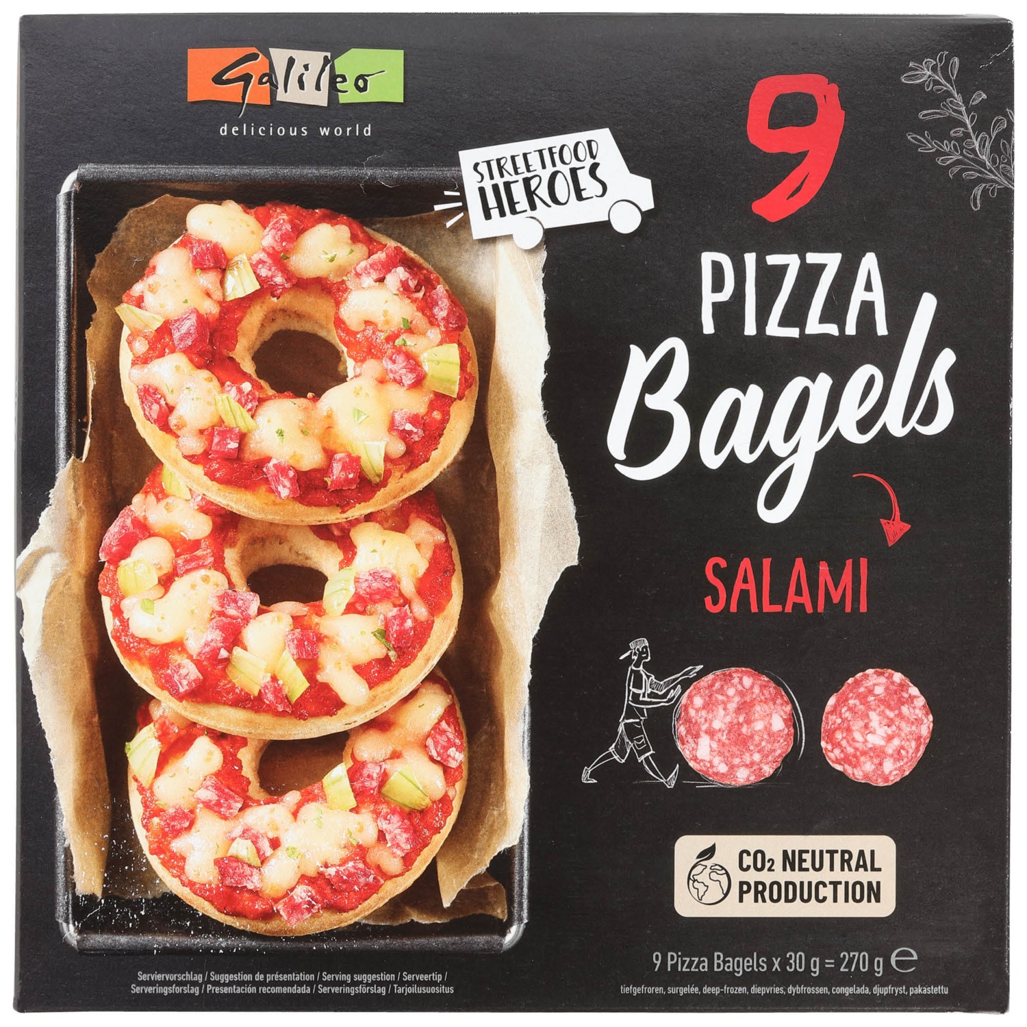 Pizza Bagels 9x30g, Bagel Salami