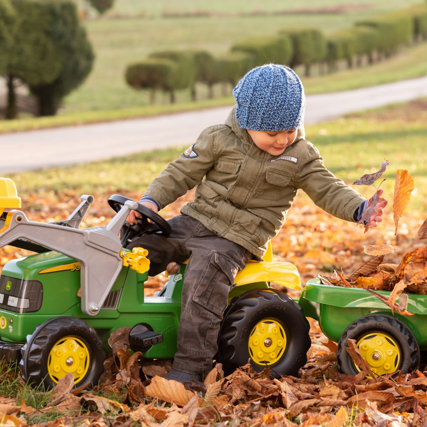 ROLLY TOYS JOHN DEERE Traktor mit Lader + Anhänger