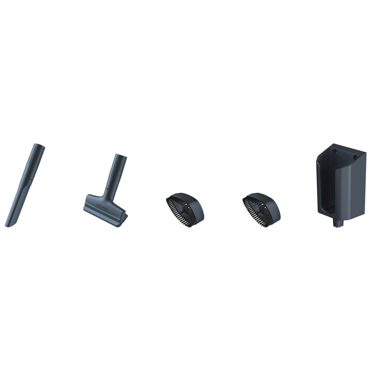 Eine Fugendüse für schwer zu erreichende Bereich, eine Sofabürste zum Saugen von Betten und Sofas, zwei einfache integrierte Bürsten für alle Flächen immer zur Hand, und ein wandmontierter Sockel zum Laden und Verstauen des Produkts