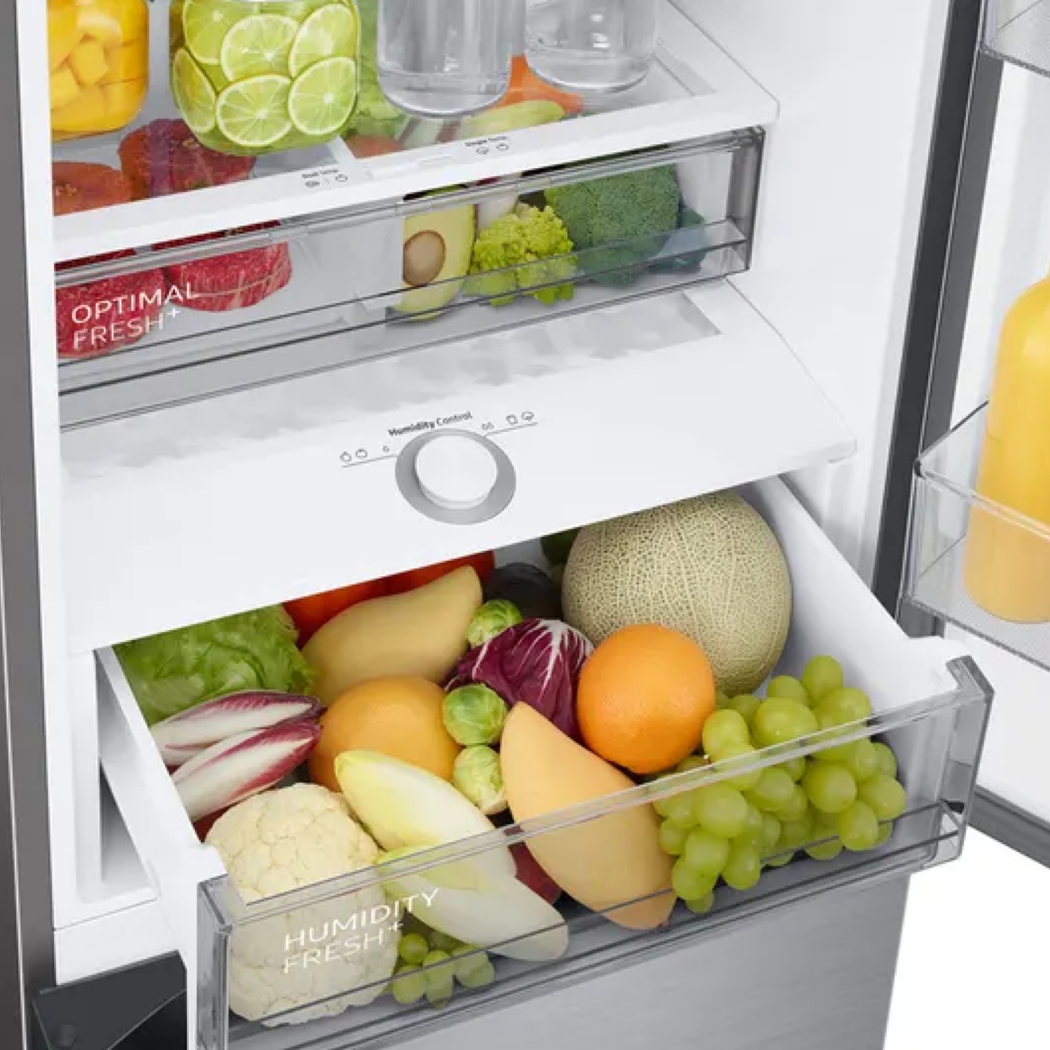 SpaceMaxMehr Platz innen, gleiche Masse aussen: SpaceMax bietet bis zu 30% mehr Nutzinhalt als vergleichbare Samsung Modelle mit gleichen Aussenmassen. Dieser Raumvorteil wird durch besonders dünne Gerätewände mit dennoch starker Isolierwirkung erzielt. Damit hast du mehr Lagerfläche im Innenraum, ohne dass der Kühlschrank selbst grösser oder die Energieeffizienz geringer wird.