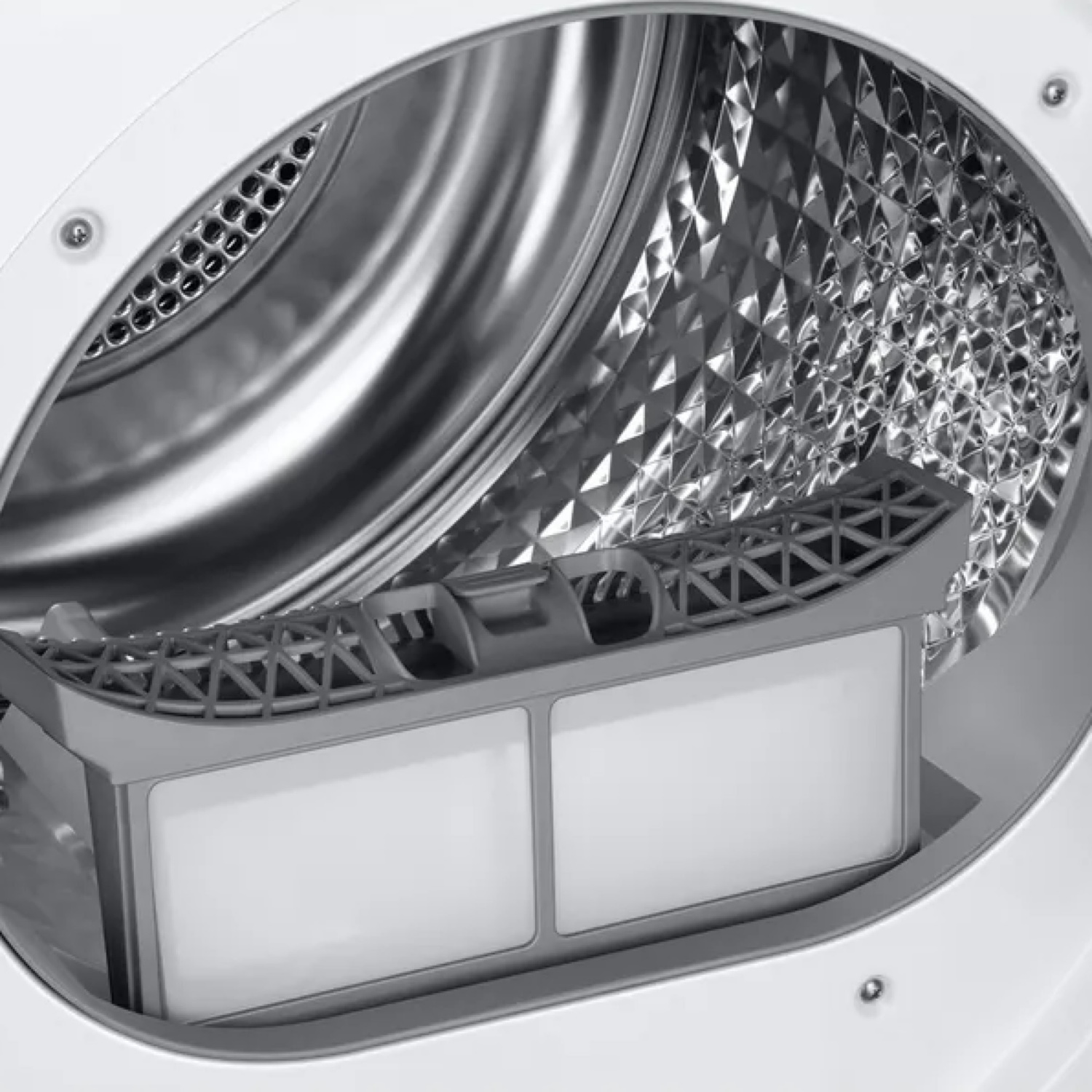 Der 2-in-1-Filter verfügt über einen doppelschichtigen Mesh-Filter, sodass ohne Wärmetauschfilter eine optimale Trockenleistung erzielt wird. Zwei Alarme benachrichtigen dich, sobald der Filter und der Wärmetauscher eine Reinigung benötigen.