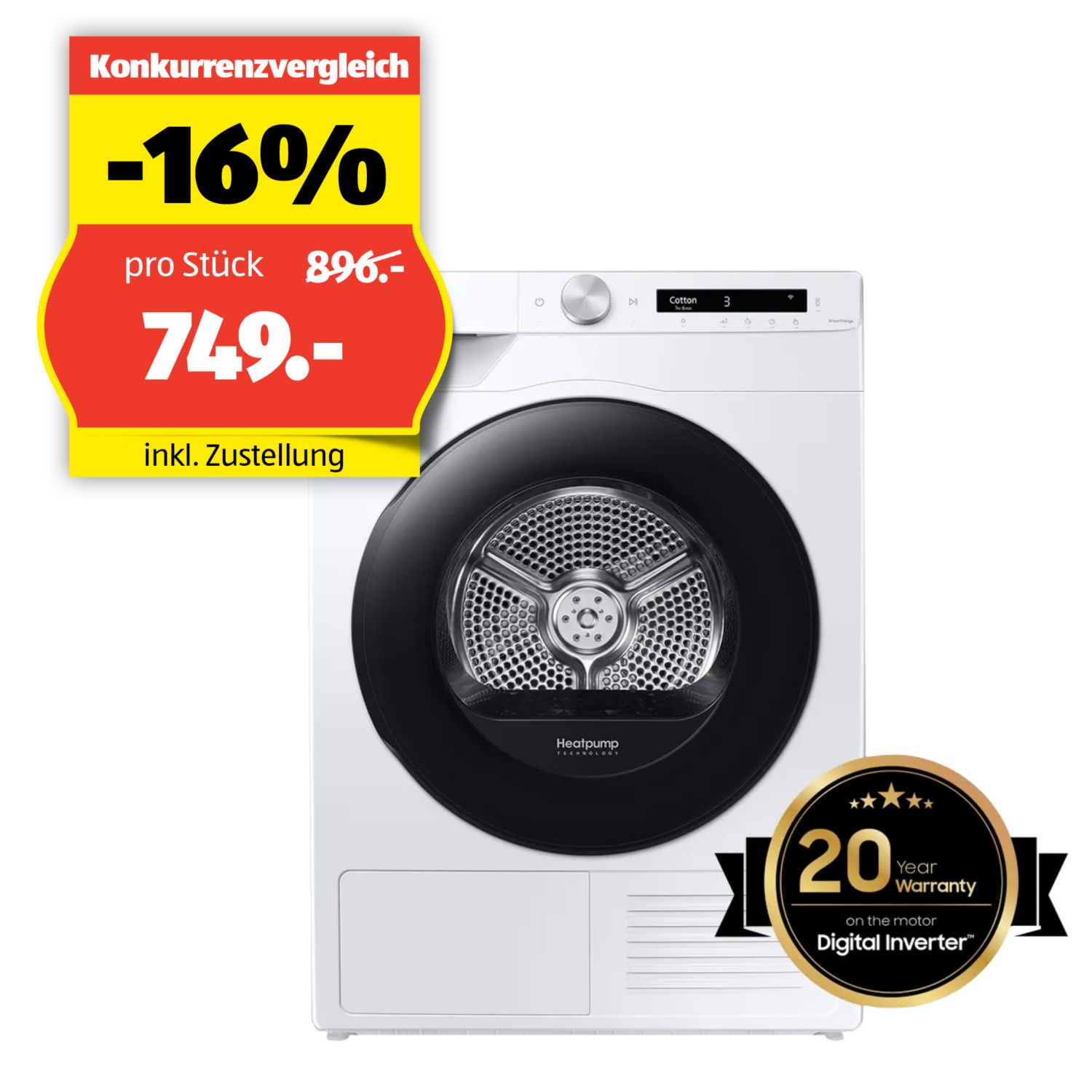 Der Samsung Wäschetrockner DV5000 kombiniert energieeffiziente Wärmepumpentechnologie (A+++) mit der OptimalDry™-Technologie, um deine Wäsche schonend zu trocknen. Mit Kapazität von 8 kg und einem intuitiven LED-Display ist er perfekt für Familien geeignet.
