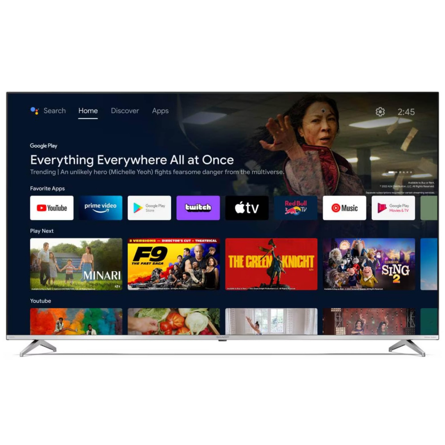 So wird Fernsehen heute gemacht: Mit der smarten Plattform Android TV hast du direkten Zugriff auf ein breites Angebot an Streaming-Diensten mit über 400.000 Filmen und Serien. Oder du überträgst mit dem integrierten Chromecast kabellos Videos, Musik oder Bilder von deinen smarten Geräten auf deinen Fernseher. Die integrierte Sprachsteuerung macht es dir leicht ob du mit Google Assistant nach deiner Lieblingssendung suchen oder das Licht im Raum dimmen möchtest.
