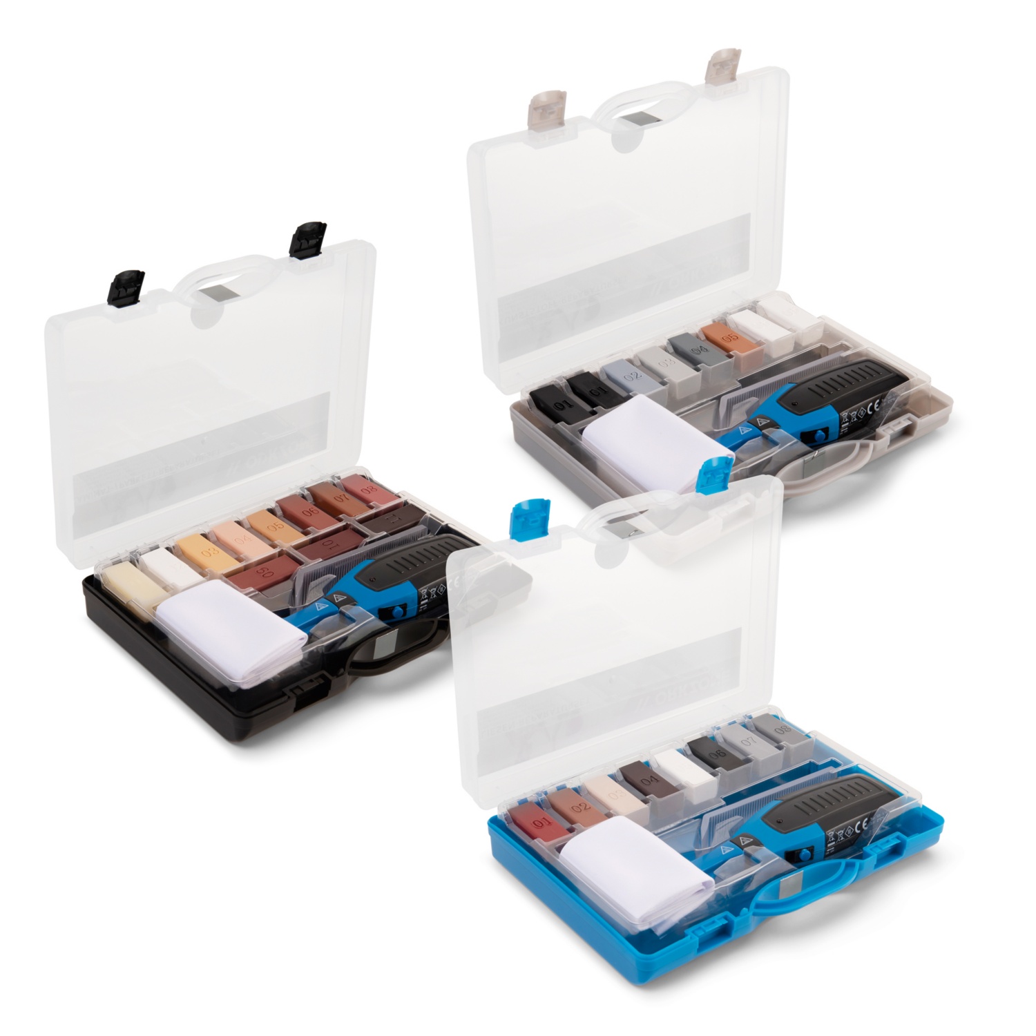 - Kunststoff-Reparatur-Set: zum Ausbessern von Montagelöchern, Kratzern auf dem Armaturenbrett, Seitenverkleidungen, Kunststofffenstern und Kunststoffoberflächen, 8 Hartwachsstangen à 4 cm,