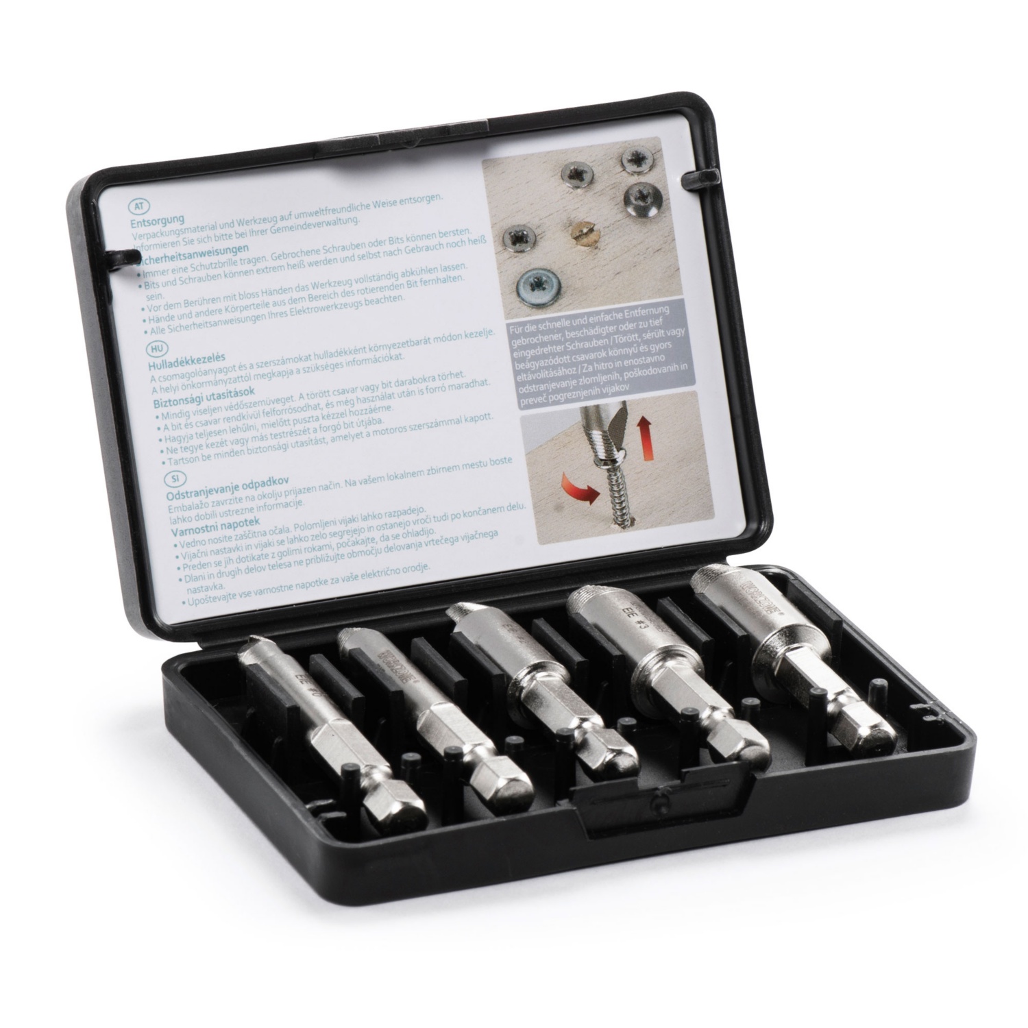 • Ideal zum Entfernen beschädigter oder abgebrochener Schrauben der Grössen 5 - 12 mm / 6 - 12 mm