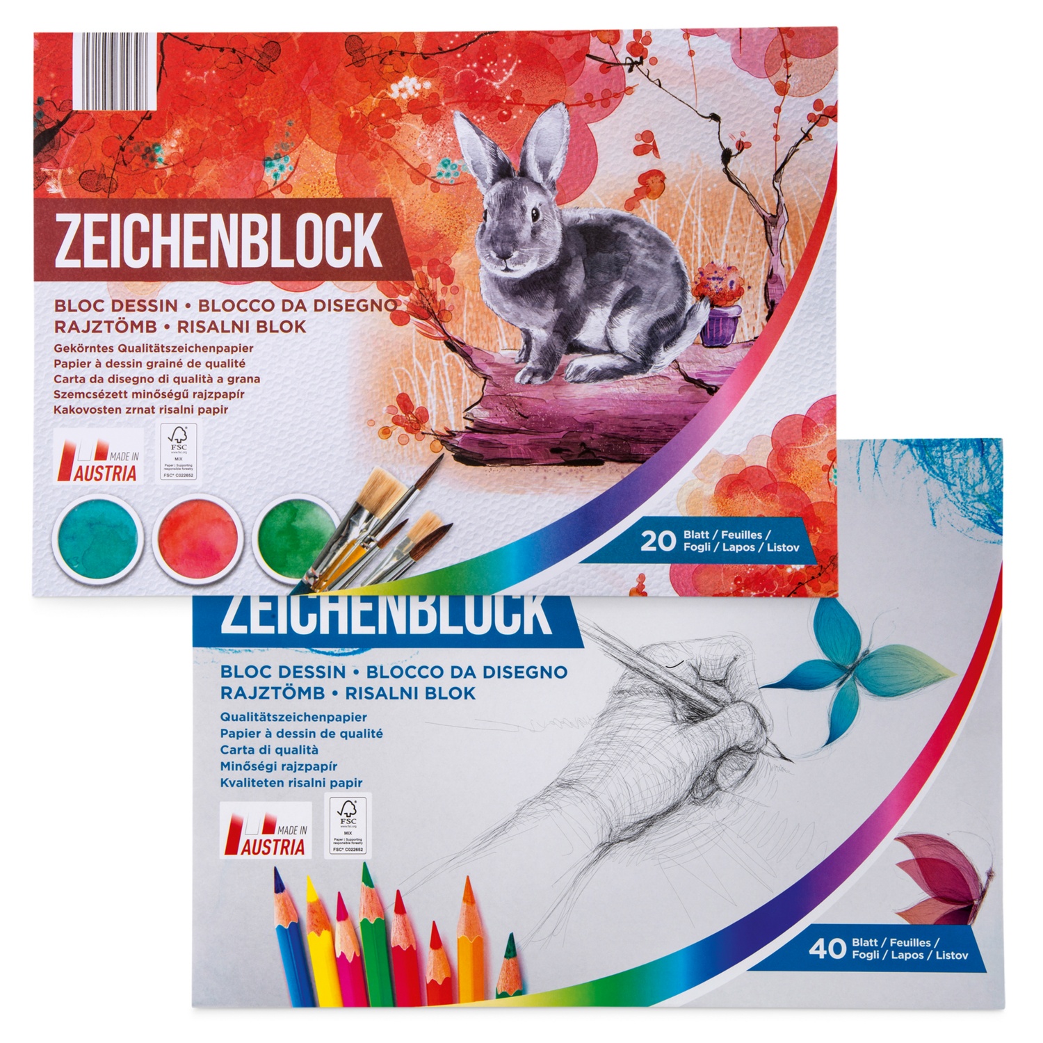 - 20 Blatt: aus gekörntem Qualitäts-Zeichenpapier oder
