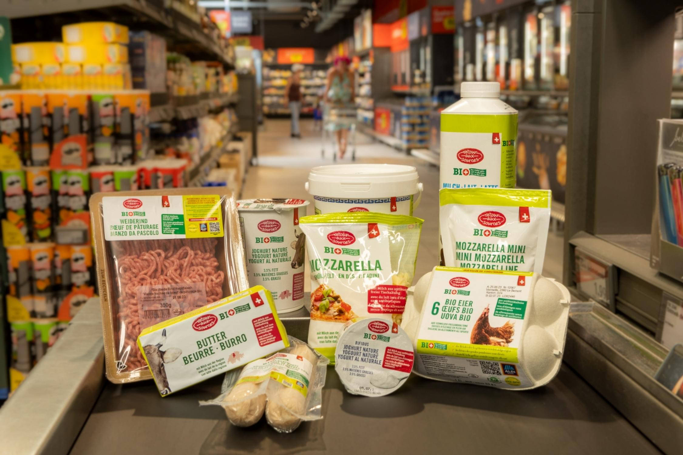 Im Frühling 2022 setzte ALDI SUISSE mit der Einführung seiner Bio-Eigenmarke «retour aux sources» nie dagewesene Standards und legte damit den Grundstein für mehr Nachhaltigkeit und Transparenz. Alle Produkte erfüllen den strengen «Prüf Nach!»-Standard, der teilweise weit über die gesetzlichen Vorgaben sowie die Bio Suisse-Richtlinien hinausgeht. Damit ist exklusiv bei ALDI SUISSE der derzeit höchste Bio-Standard am Schweizer Markt erhältlich. Dieser Standard beinhaltet unter anderem strenge Vorgaben zum Tierwohl wie eine kraftfutterfreie Fütterung und die verpflichtende Weide- und Laufstallhaltung bei Milchvieh, sowie eine antibiotikafreie Tierhaltung. Letztere ist sowohl bei Milchvieh als auch bei Weiderindern und in der Geflügelaufzucht obligatorisch. Im Gemüse- und Obstbau wird auf Bio-Düngung frei von Schlachtabfällen gesetzt. Ein besonders wichtiger Aspekt von «retour aux sources» ist die lückenlose Rückverfolgbarkeit jedes Produkts bis auf die Bauernhöfe.