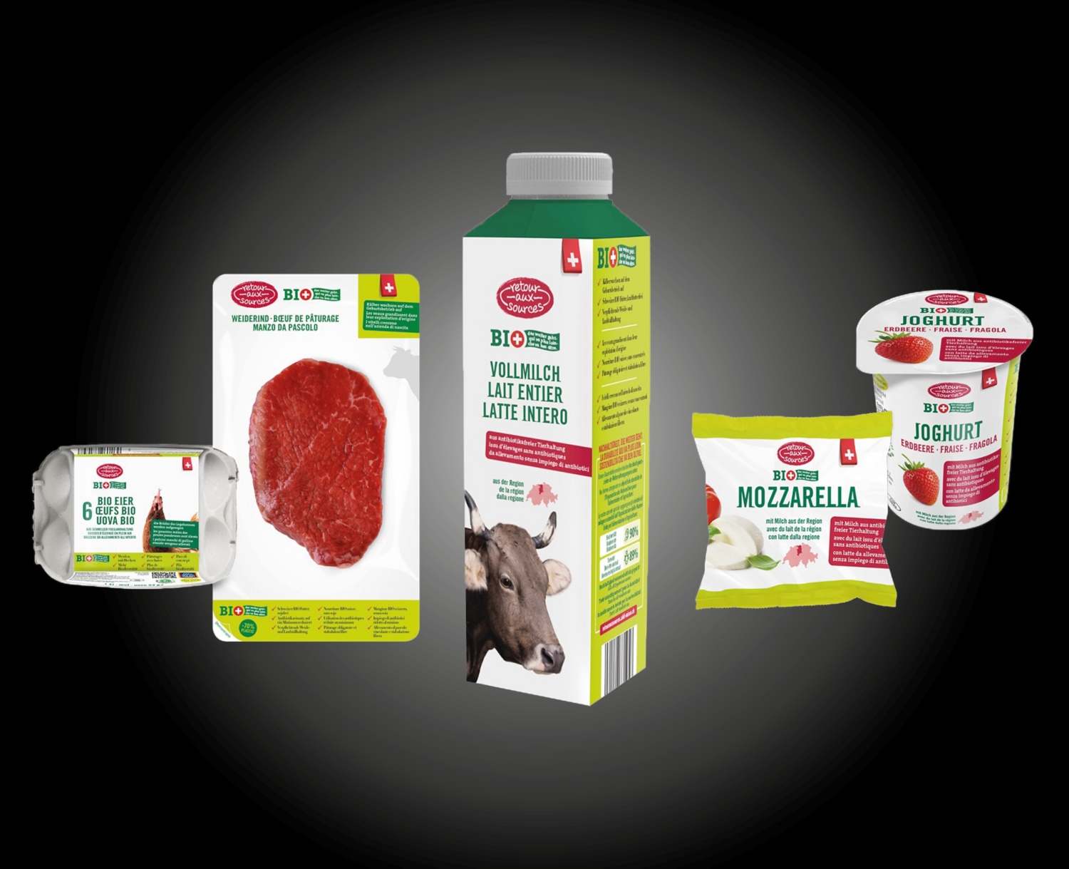 Mit seiner neuen BIO-Eigenmarkenlinie RETOUR AUX SOURCES setzt ALDI SUISSE weitreichende Standards in der Schweizer BIO-Landwirtschaft und nimmt die ersten Milch- und Fleischartikel sowie Eier ins Sortiment auf. Als Basis für RETOUR AUX SOURCES dienen die starken Bio Suisse-Richtlinien. So stammen sämtliche RETOUR AUX SOURCES-Produkte von Bio Suisse-zertifizierten Betrieben. Gleichzeitig erfüllen die RETOUR AUX SOURCES-Produkte den Prüf Nach!-Standard, dessen Vorgaben teilweise weit über die bestehenden BIO-Labels hinausgehen. Damit führt der Schweizer Detailhändler ab sofort Schweizer BIO-Produkte mit höchstem Standard in seinem Sortiment – BIO, das weiter geht. Die Produkte sind ausschliesslich und exklusiv bei ALDI SUISSE erhältlich.