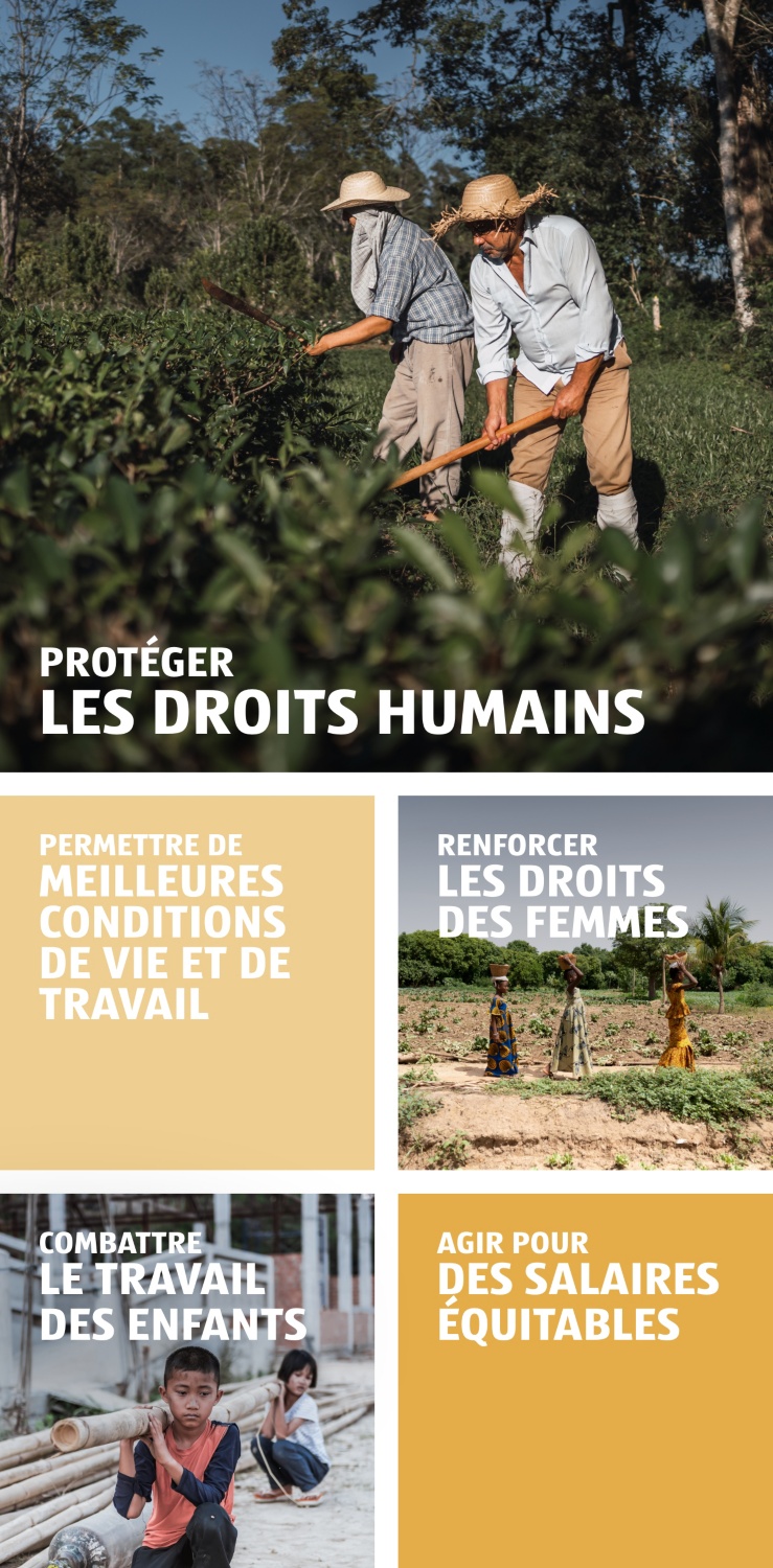 Revenus et salaires décents: nous faisons notre part pour assurer un niveau de vie décent aux personnes tout au long de nos chaînes d'approvisionnement alimentaires et non alimentaires. Le paiement de salaires et de revenus suffisants pour vivre est un élément essentiel de cet engagement.