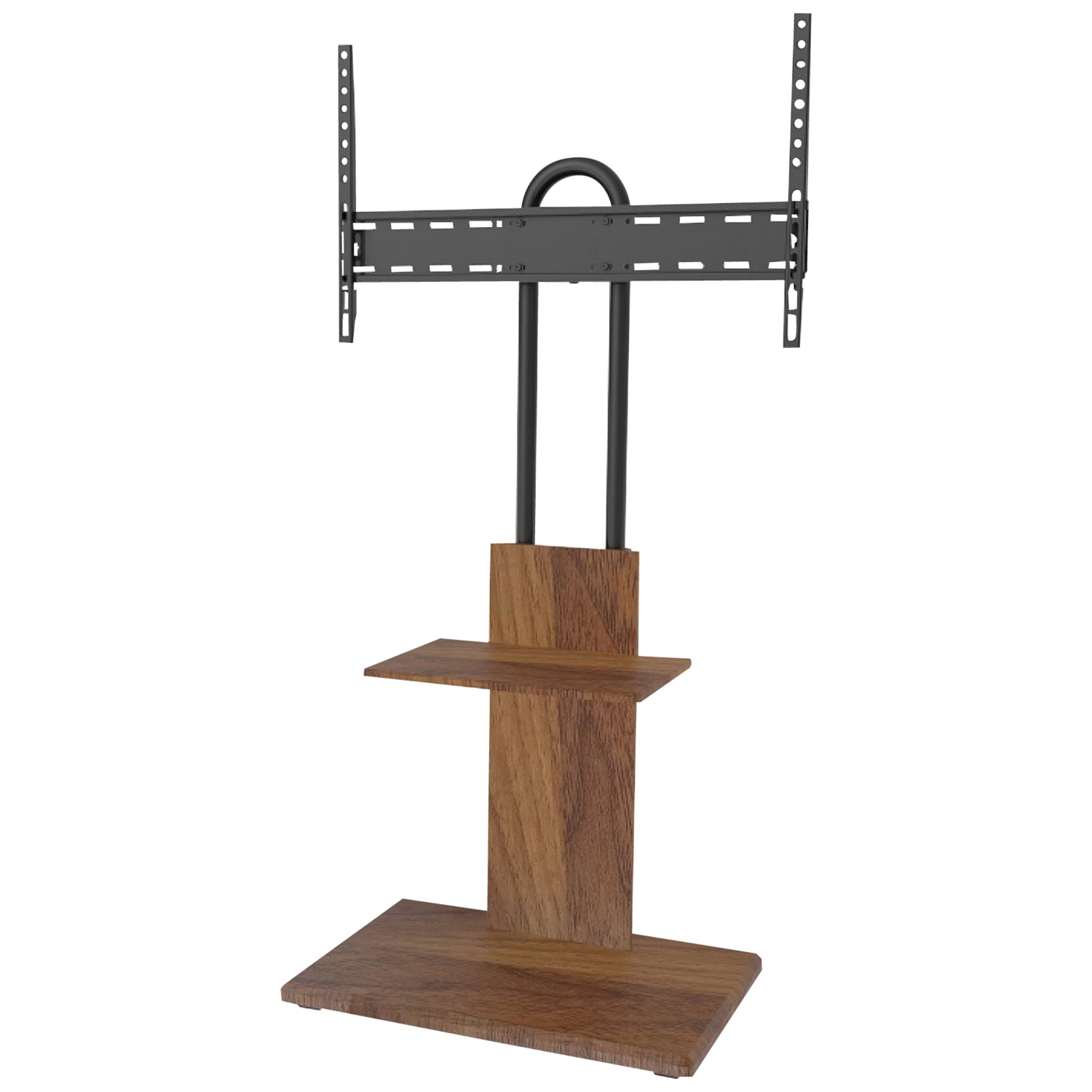 Pied de TV, noyer noir, idéal pour votre chambre et votre bureau, réglable en hauteur, pivotant, gestion des câbles et tablette pour vos appareils supplémentaires, convient jusqu'à 70" et poids max. 45 Kg
