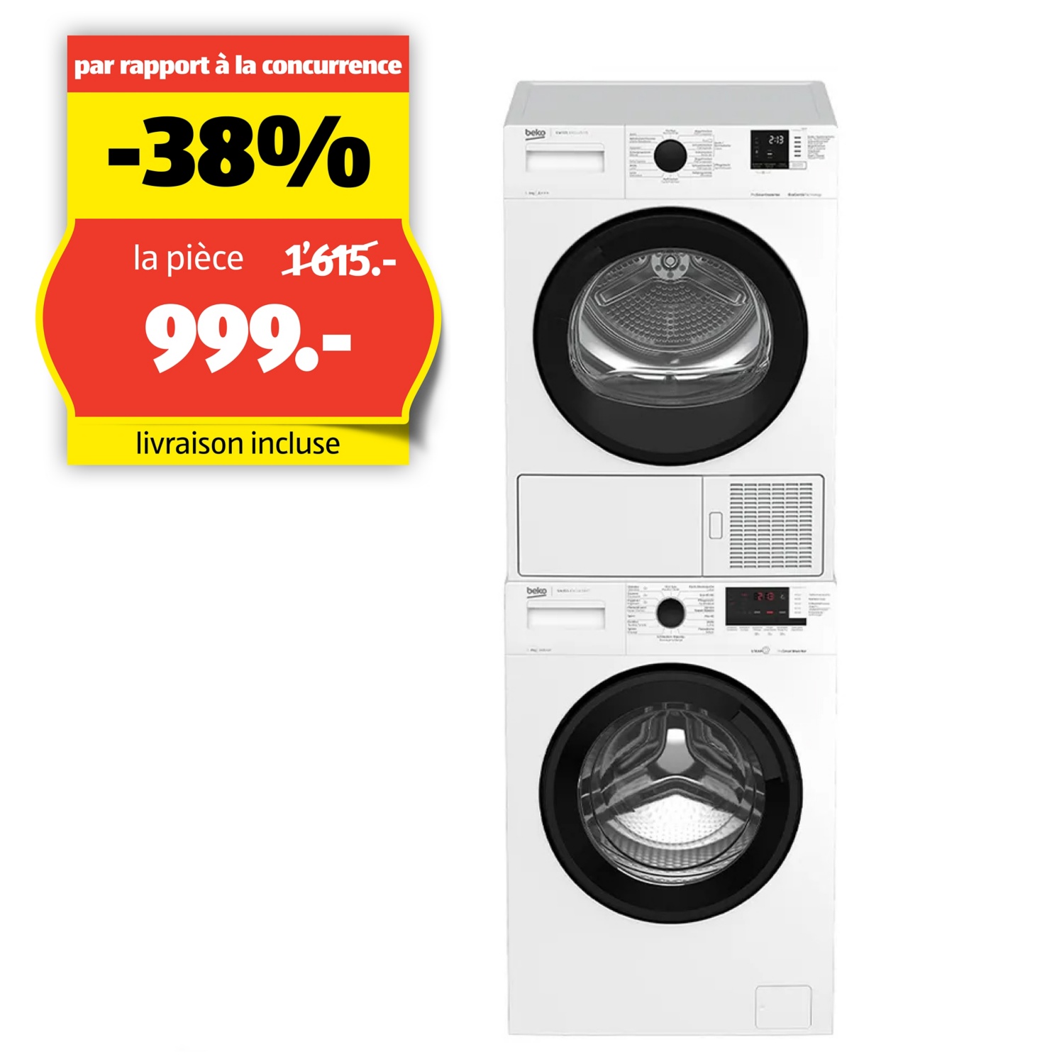 Découvre la tour de lavage peu encombrante de Beko: Lave-linge WM215 et sèche-linge TR218
