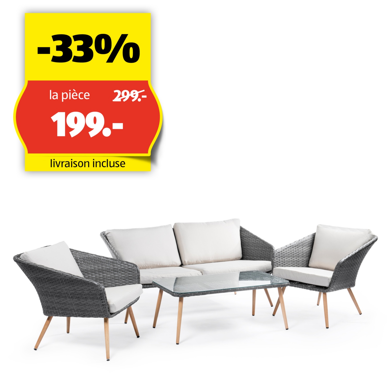 - Composé d'un canapé 2 places, de 2 chaises et d'une table