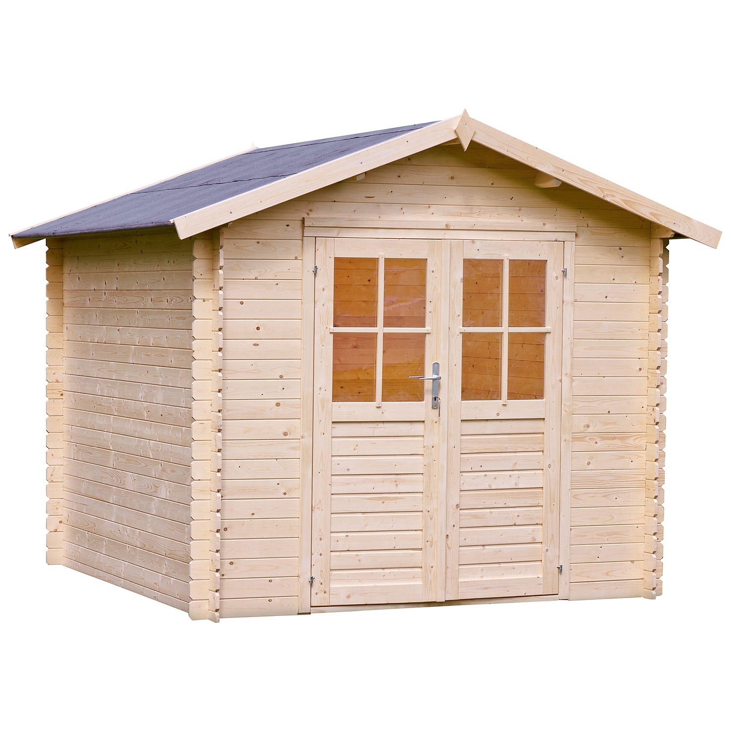 - Structure à construire soi-même en madriers avec un système d’assemblage à rainure et languette