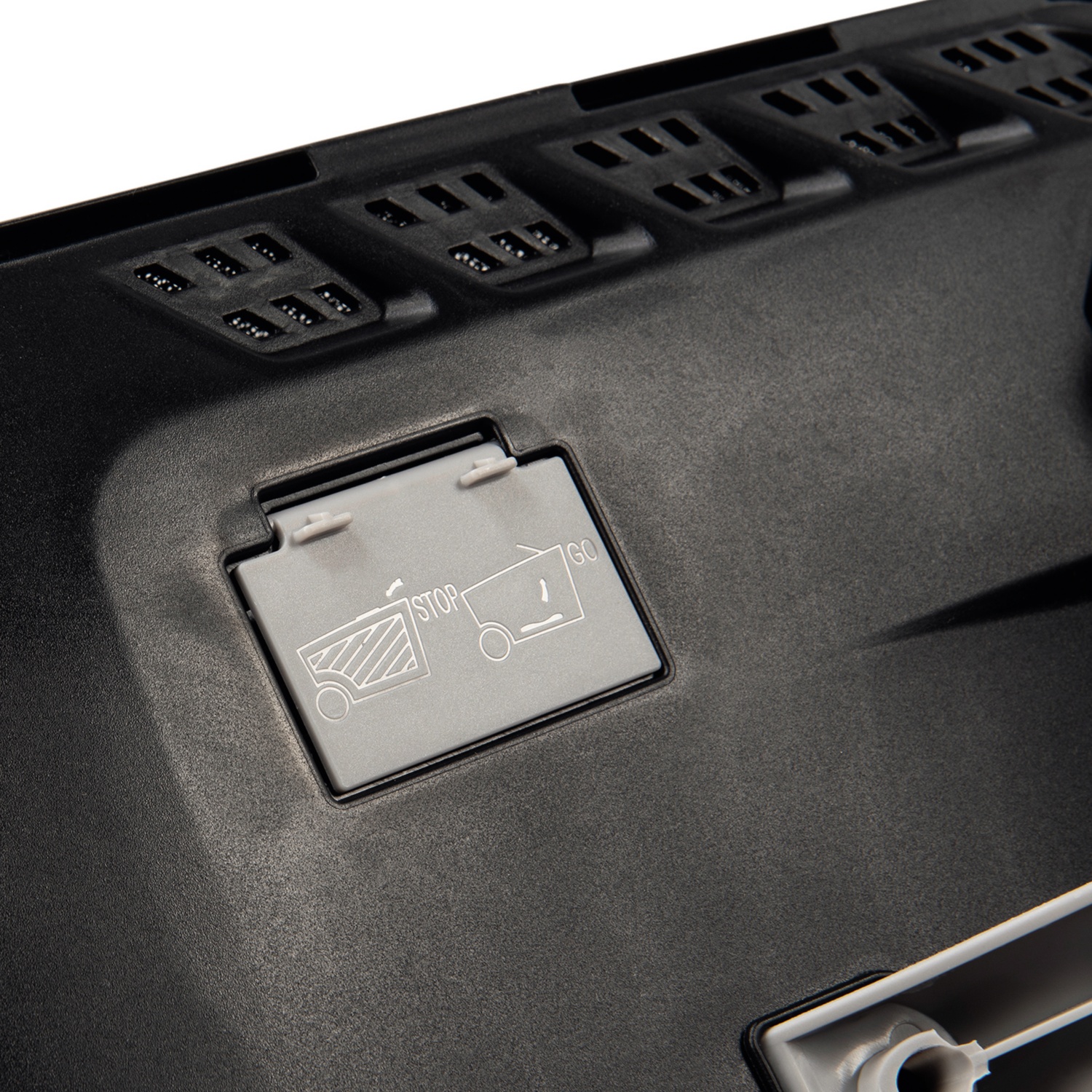 Son arceau de poussée se replie pour prendre le moins de place possible. Le bac de ramassage de 35 litres est équipé d'un indicateur de remplissage intégré: tu travailles confortablement, sans avoir à le vider trop souvent.