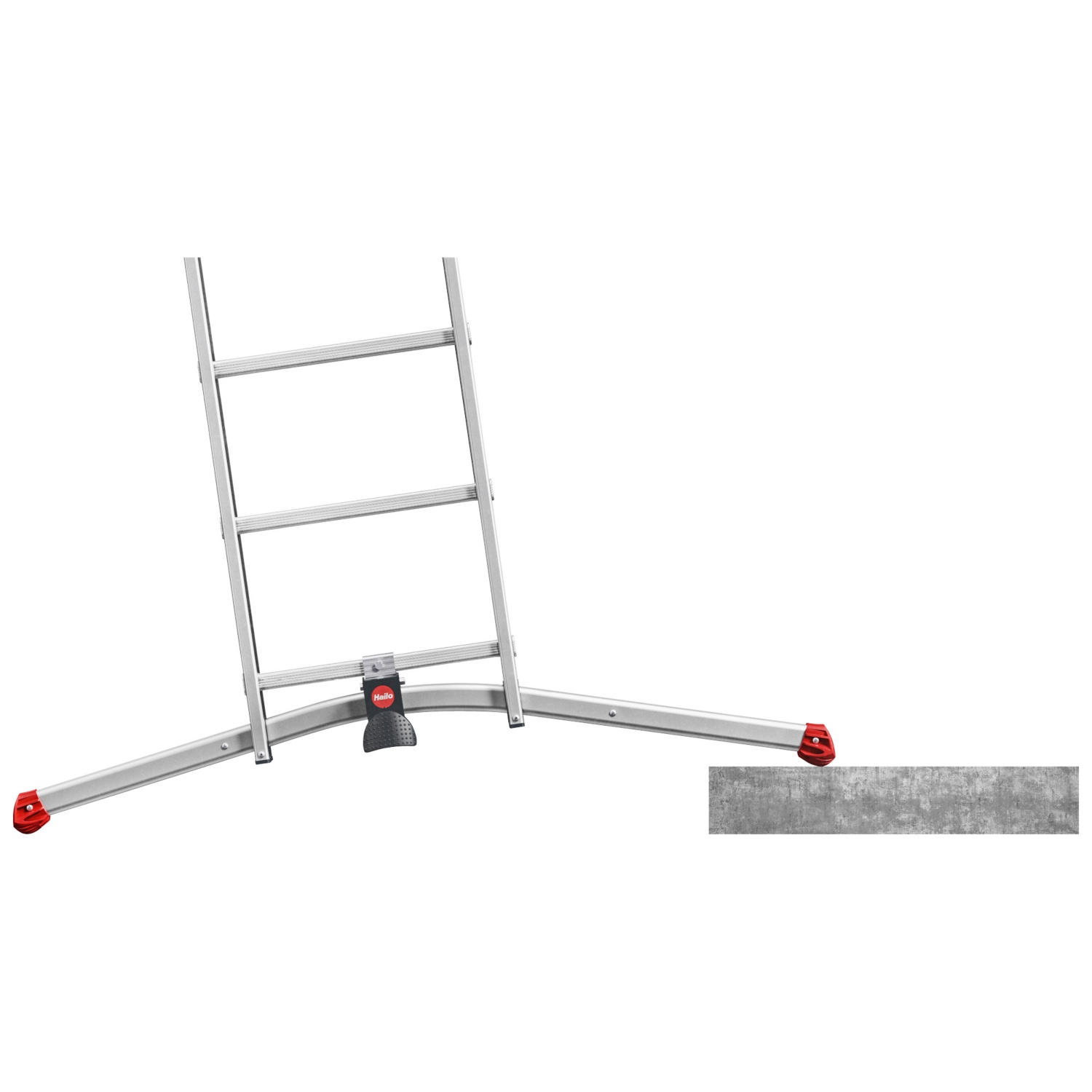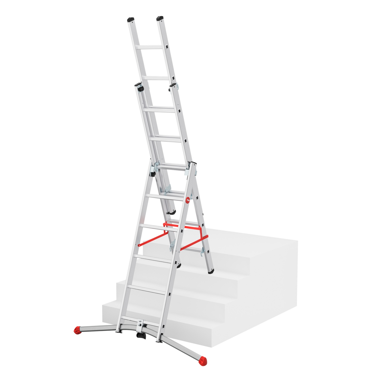 - Échelle combinée en aluminium, 3éléments, avec système LOT: compense les inégalités du sol jusqu’à 15cm, réglage par pédale.