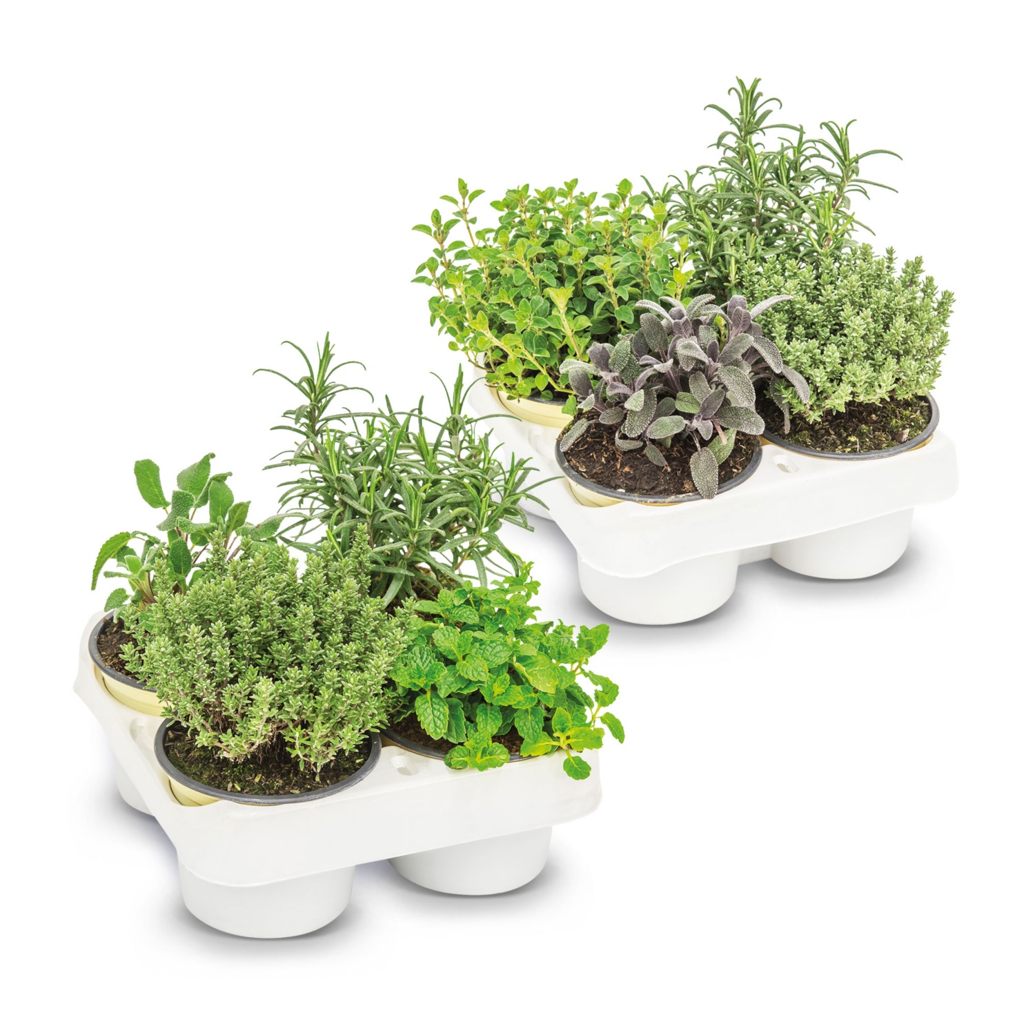 12 à 18 cm suivant la variété, différentes variétés comme p. ex. marjolaine, menthe, origan, romarin, sauge et thym