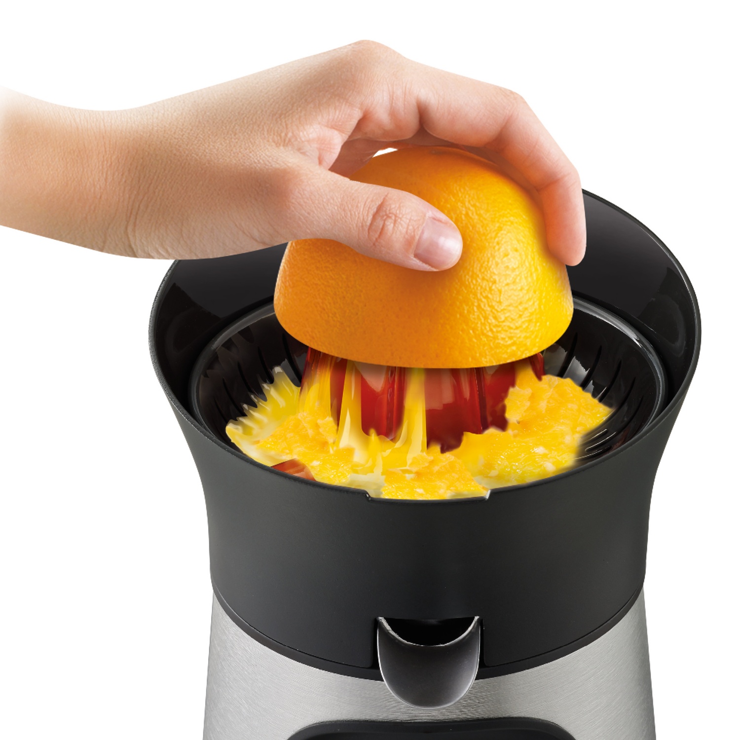 Servir directement le jus avec le nouveau VitaPress Direct Serve avec une enveloppe métallique durable, avec un design et des finitions de haute qualité. Il dispose de différents embouts pour tous les types d'agrumes, d'un stop-goutte, d'une protection du couvercle et d'un rangement pour le cordon. 3 cônes de couleur: jaune pour le citron, orange pour la mandarine et l'orange, rose pour le pamplemousse. Grâce à l'ouverture de sortie pour le service direct, le jus s'écoule directement dans le verre. Prêt à boire, sans avoir besoin de laver des récipients supplémentaires ou autres. Puissance de 100 watts pour traiter tous les types d'agrumes en grande quantité.