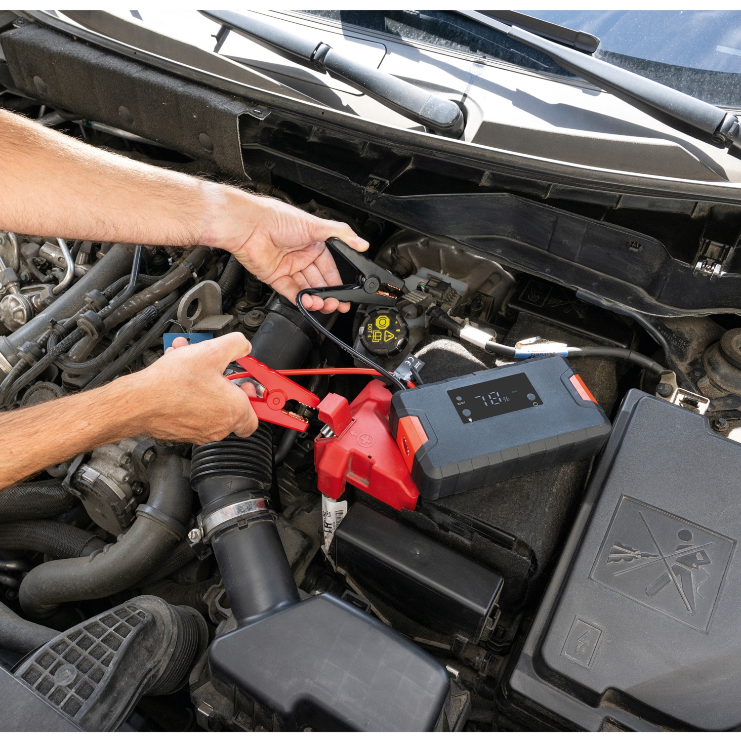 Grâce à notre puissant démarreur de secours de 15000mA·h, tu disposes d’une source d’alimentation partout qui te permet de recharger ta voiture et tes appareils à tout moment. L’appareil est équipé d’une batterie puissante de 15000mA·h (3 × 3.7V, 5000mA·h) et offre une alimentation polyvalente via des ports USB (5V/1A, 5V/2A) et une sortie en CC de 12V/6A. Il dispose de plusieurs options de charge, dont une entrée CC5.5 avec max. 15V/1A. Une lampe de secours intégrée avec trois modes d’éclairage (SOS, lampe de poche et lumière continue) offre une sécurité supplémentaire dans toutes les situations. Cet appareil conçu pour durer est protégé contre les projections d’eau et la poussière conformément à la normeIP54. La livraison comprend des accessoires importants tels qu’un câble de batterie avec pinces, un bloc d’alimentation, un chargeur de voiture 12V compatible avec tous les véhicules 12V, un câble de chargement 3 en 1 avec connecteurs mini-USB, micro-USB et typeC, ainsi qu’un sac de rangement pratique. Prépare-toi et ne manque jamais d’électricité quand tu en as besoin.