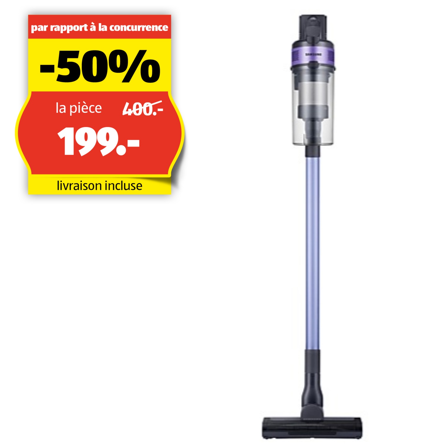 Plus de confort pour ton ménage: La structure légère de cet aspirateur sans fil le rend très maniable et facile à déplacer, ce qui soulage la tension sur l'articulation du poignet. Avec seulement 1.48kg, il est 21% plus léger que les aspirateurs traditionnels de Samsung: passer l'aspirateur n'a jamais été aussi facile!