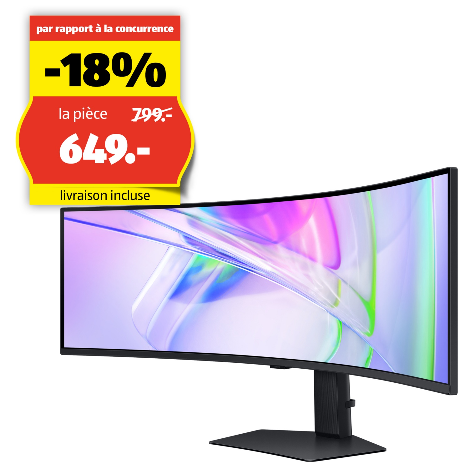 Cet écran dispose d’une surface d’affichage incurvée «curved design». Par comparaison avec les écrans plats, il remplit une plus grande partie de ton champ de vision pour une même diagonale d’écran. Il crée ainsi un effet panoramique impressionnant et garantit une lisibilité optimale jusqu’aux bords.