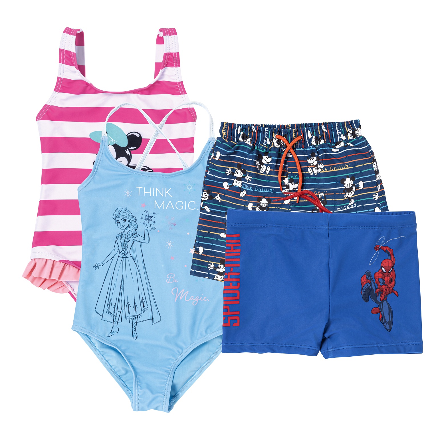 - Bikini, maillots de bain, pantalons rétro et shorts de bain dans différentes couleurs et avec des motifs de licence