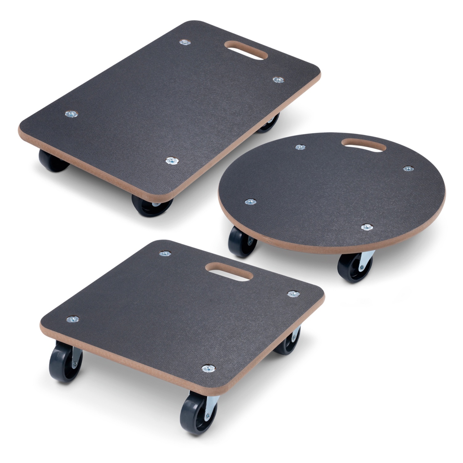 - 4roues pivotantes (diamètre: env. 75mm, largeur: env. 30mm, coloris: gris foncé)