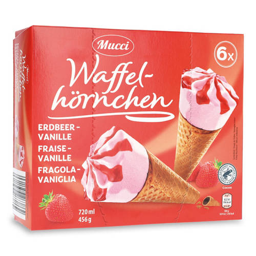 Les cornets fraise-vanille de MUCCI associent fraîcheur estivale et plaisir crémeux: une délicieuse glace à la vanille combinée à une glace fruitée à la fraise, servies dans un cornet en gaufrette croustillante, le tout agrémenté d’une sauce fruitée et d’un décor.Un classique pour les amateurs de glaces fruitées et sucrées, idéal pour les journées chaudes, en dessert ou pour une petite pause gourmande.Caractéristiques